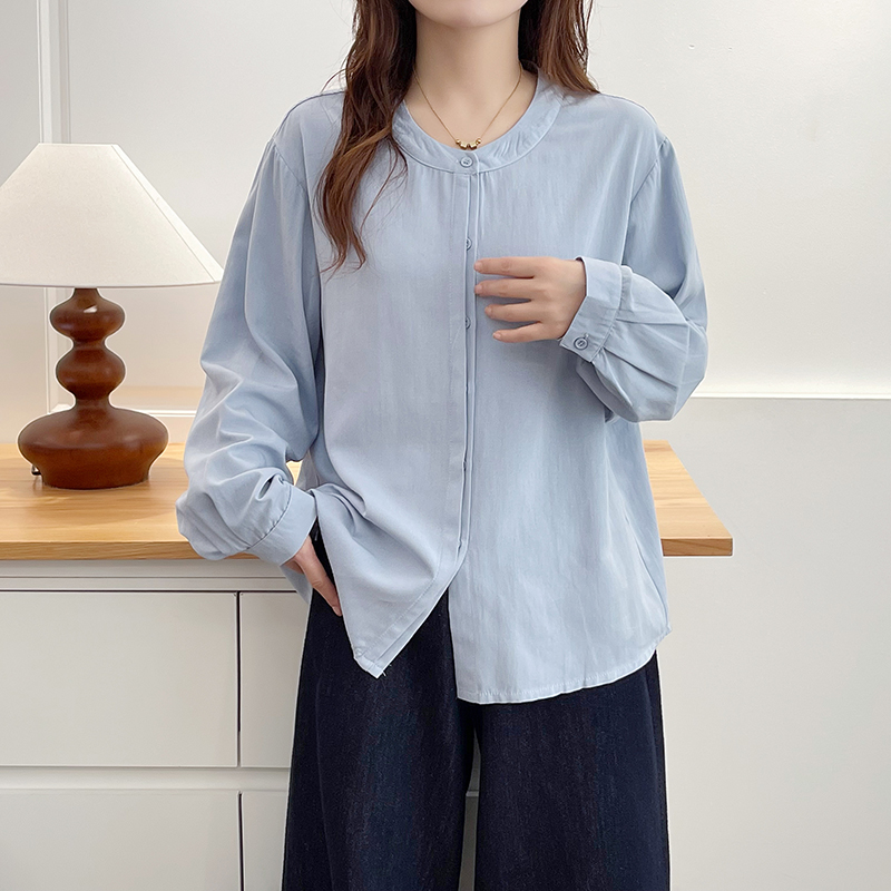 大码女装遮肚子圆领长袖衬衫2025秋季新款打底衫显瘦洋气胖mm衬衣