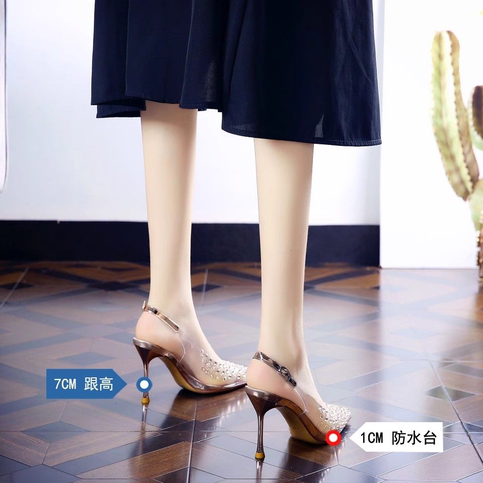 欧美透明镂空水钻尖头高跟鞋女2025年夏季凉鞋设计感后空细跟单鞋