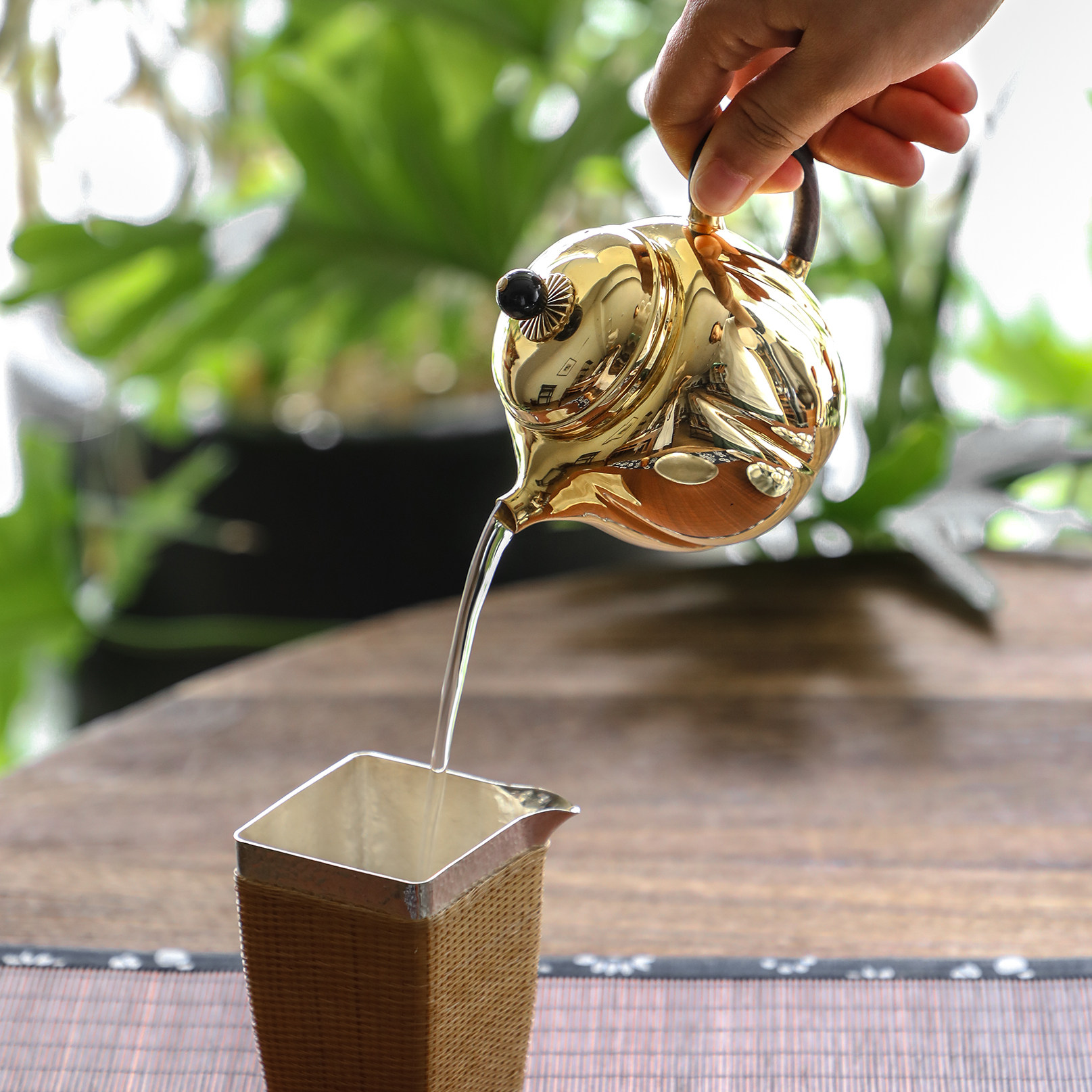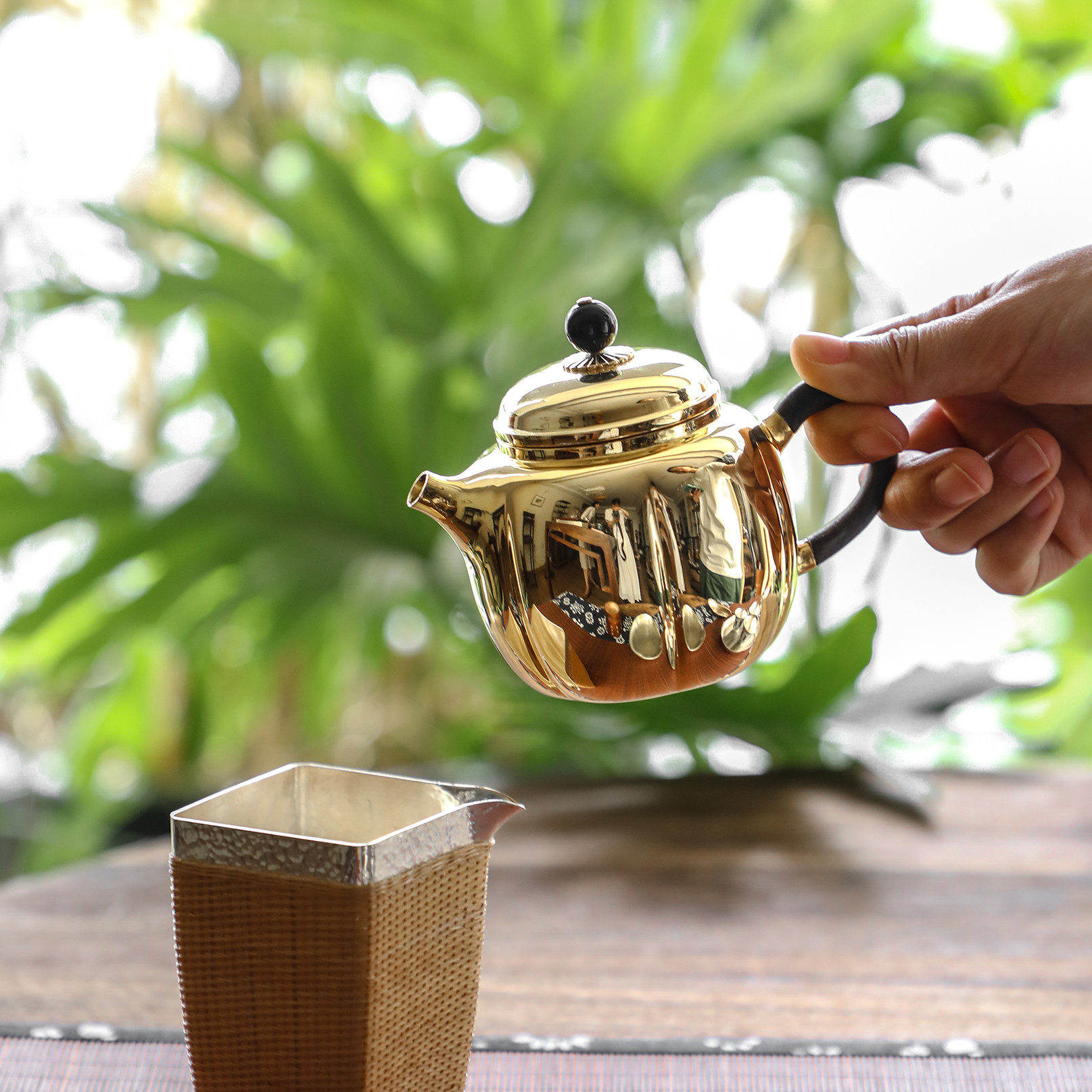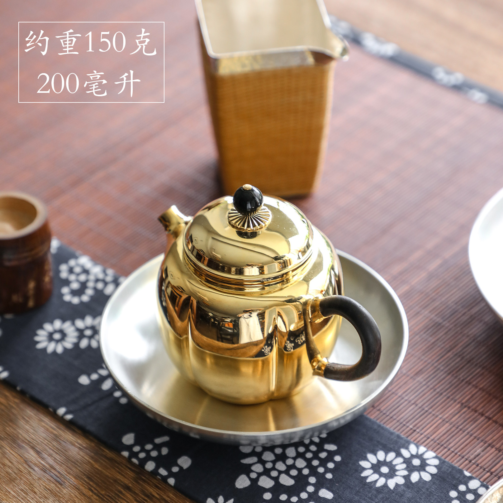 纯银时代 秋月鎏金泡茶壶足银999全纯手工精致富贵送礼定制200ml