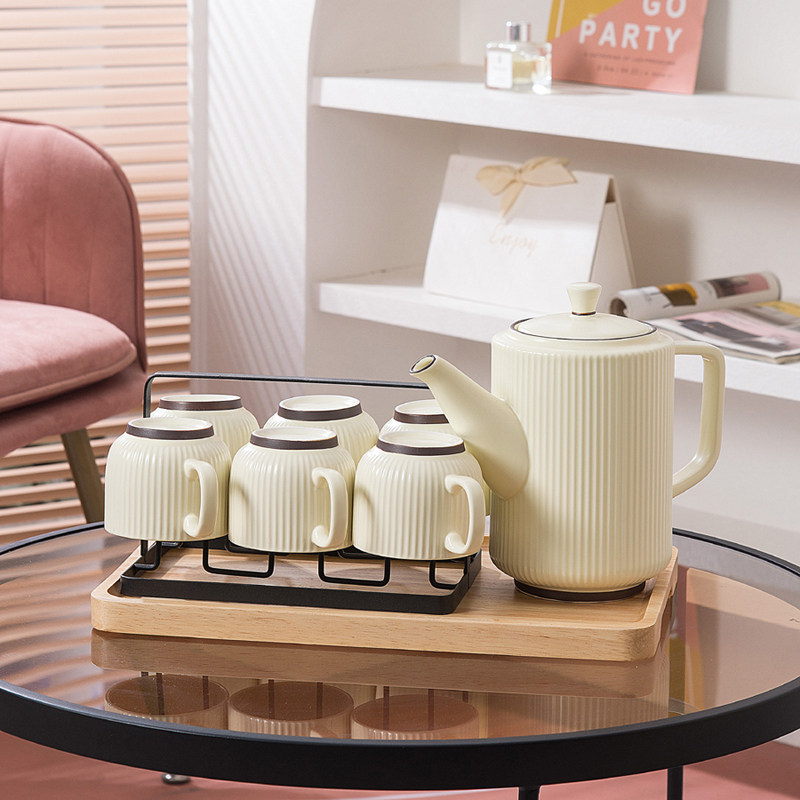 北欧茶杯水壶套装杯子家用 客厅陶瓷水杯耐高温 轻奢套杯水具杯具