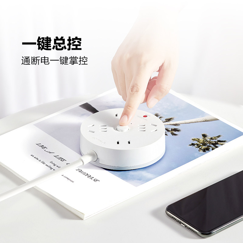 公牛卷线盘插座收纳可伸缩绕线移动延长电线圆形接拖线板圆盘插排