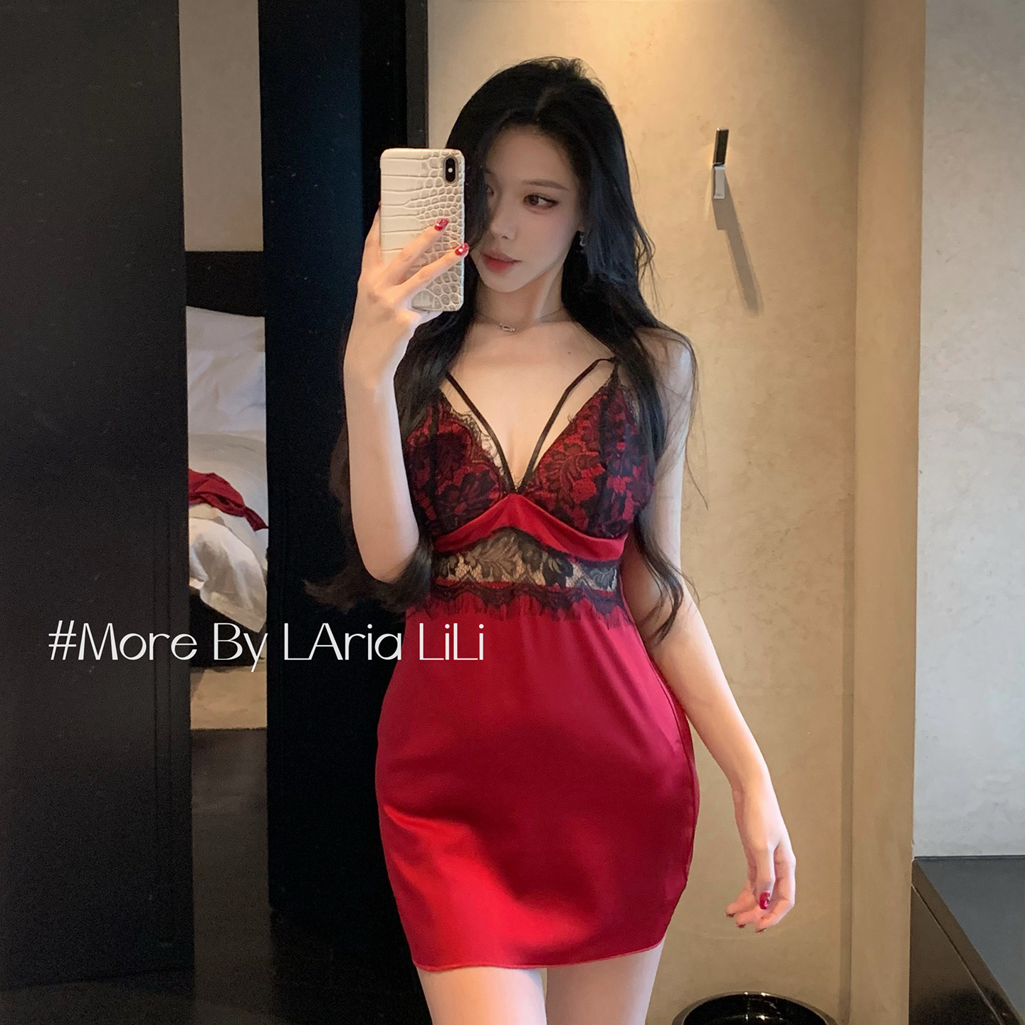 LAria富婆红 性感冰丝睡衣女2026新款秋冬季睡裙纯欲风吊带家居服