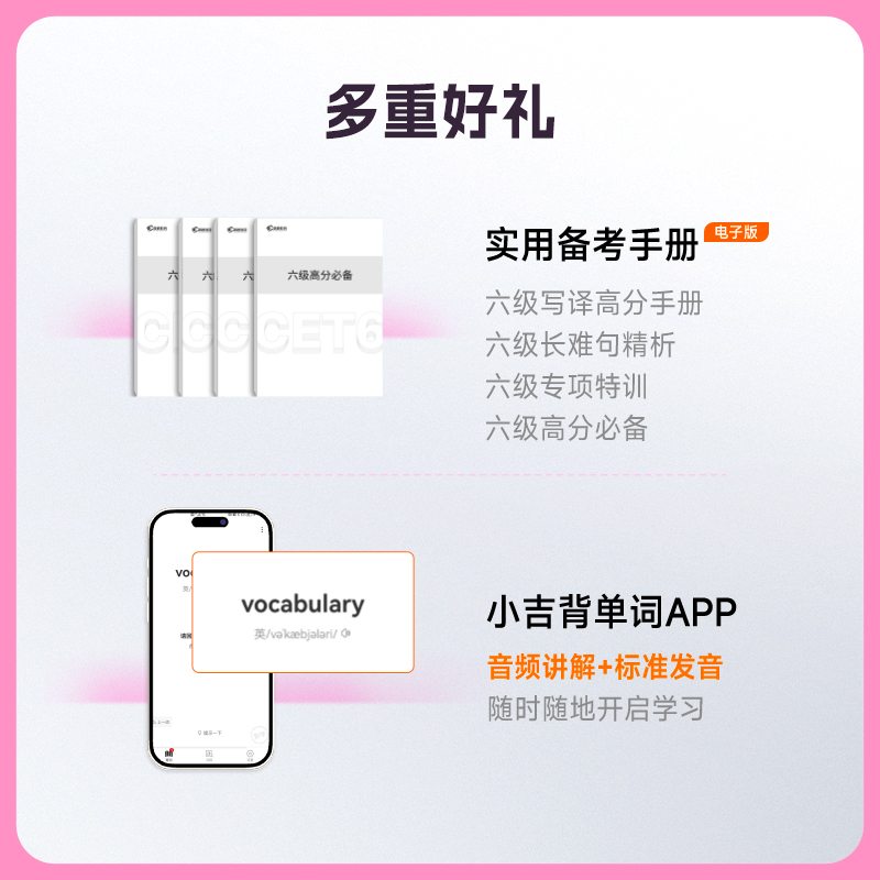 六级真题备考2025年6月 英语六级真题试卷六级考试英语真题听力阅读大学英语四六级高顿英语六级真题卷子cet6级词汇书六级真题