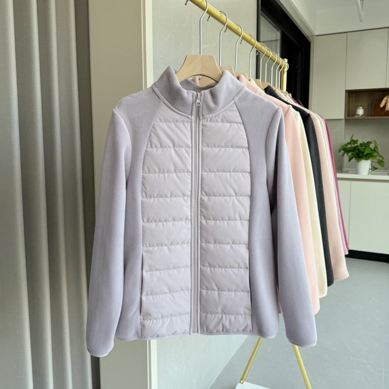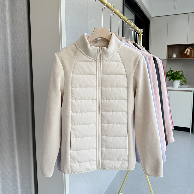 秋冬季夹棉上衣女2025新款加绒保暖羊毛立领短款轻薄棉服休闲外套
