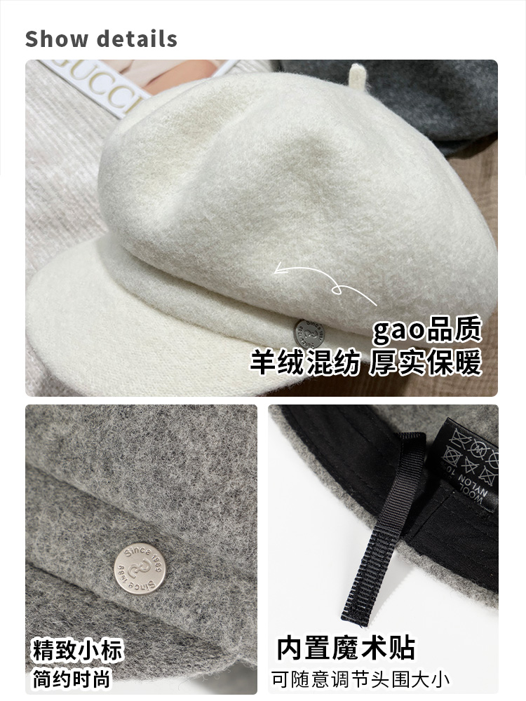 逛街贝雷帽女羊毛呢英伦复古秋冬