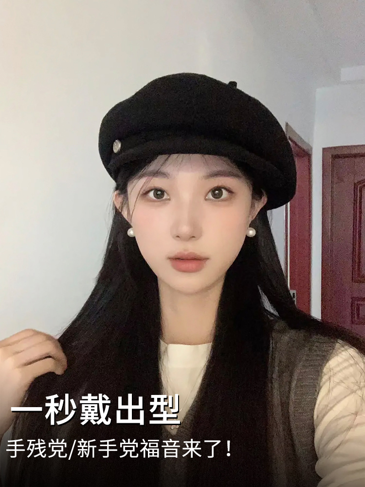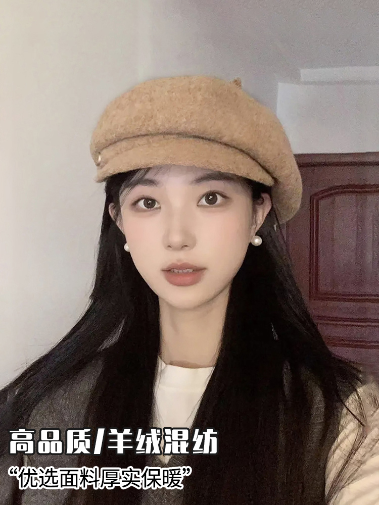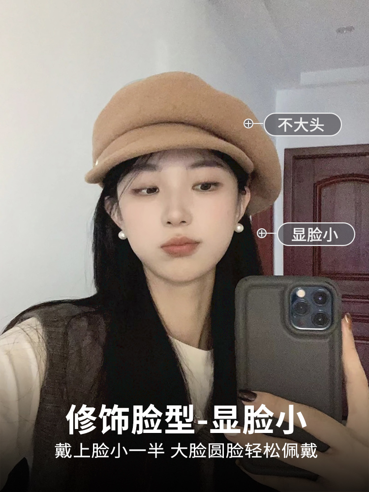 韩版百搭羊毛呢贝雷帽子女款秋冬季休闲气质鸭舌帽英伦复古画家帽