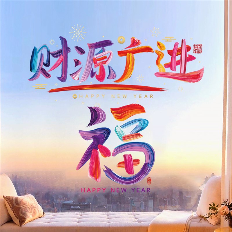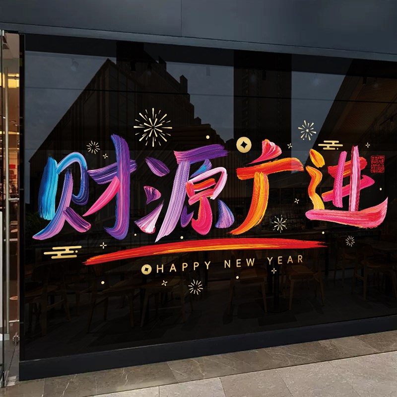 财源广进新年装饰贴纸2025静电窗贴春节店铺橱窗玻璃门贴窗花贴画