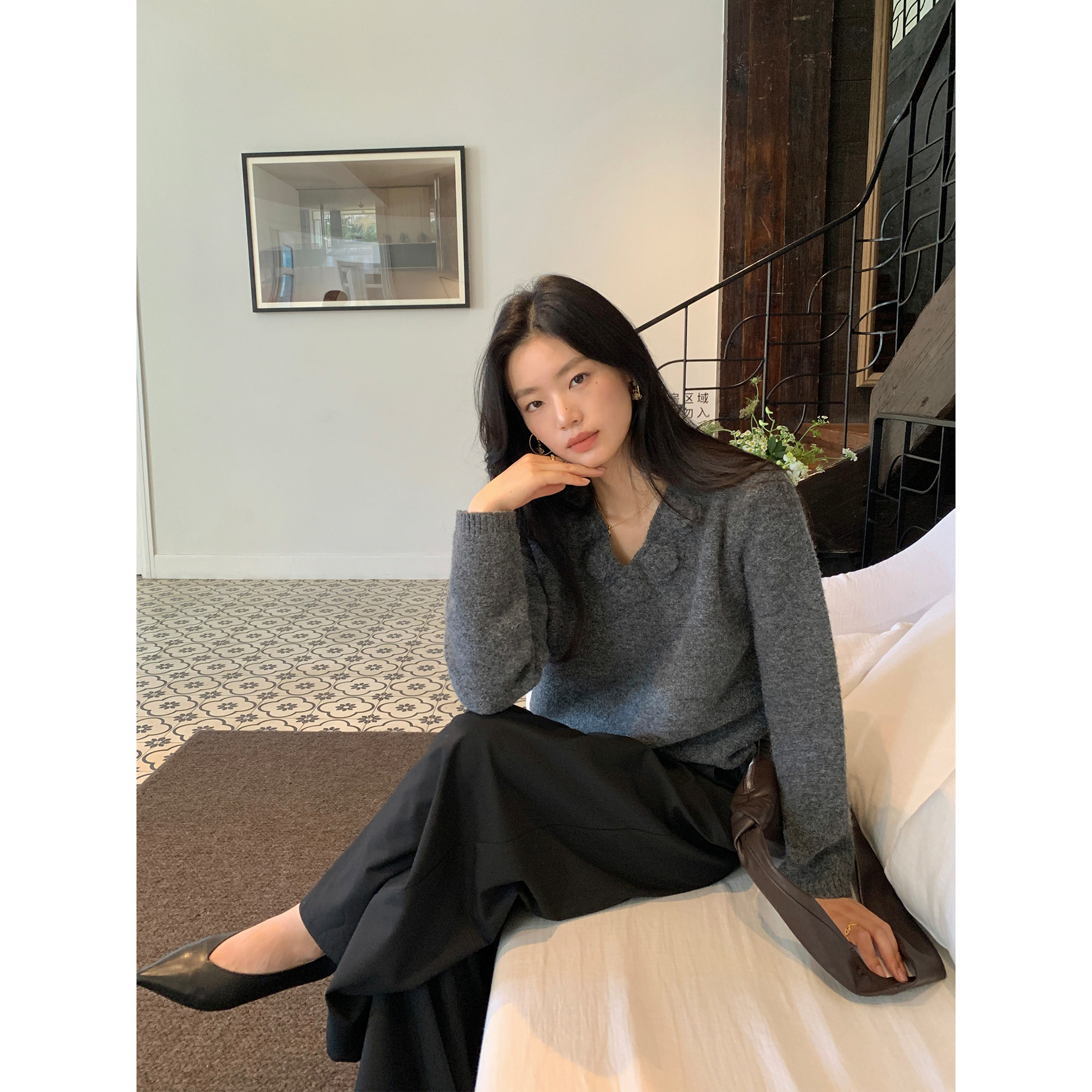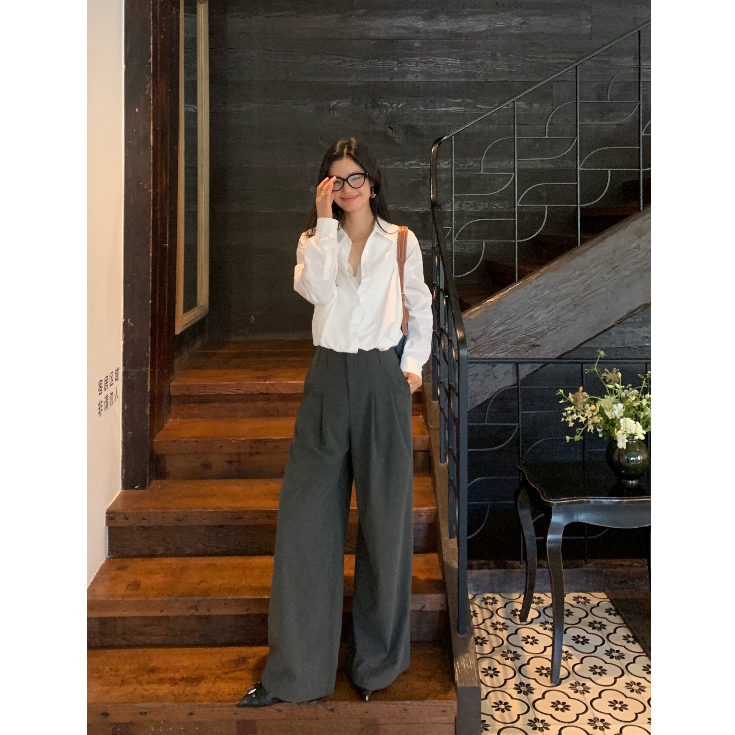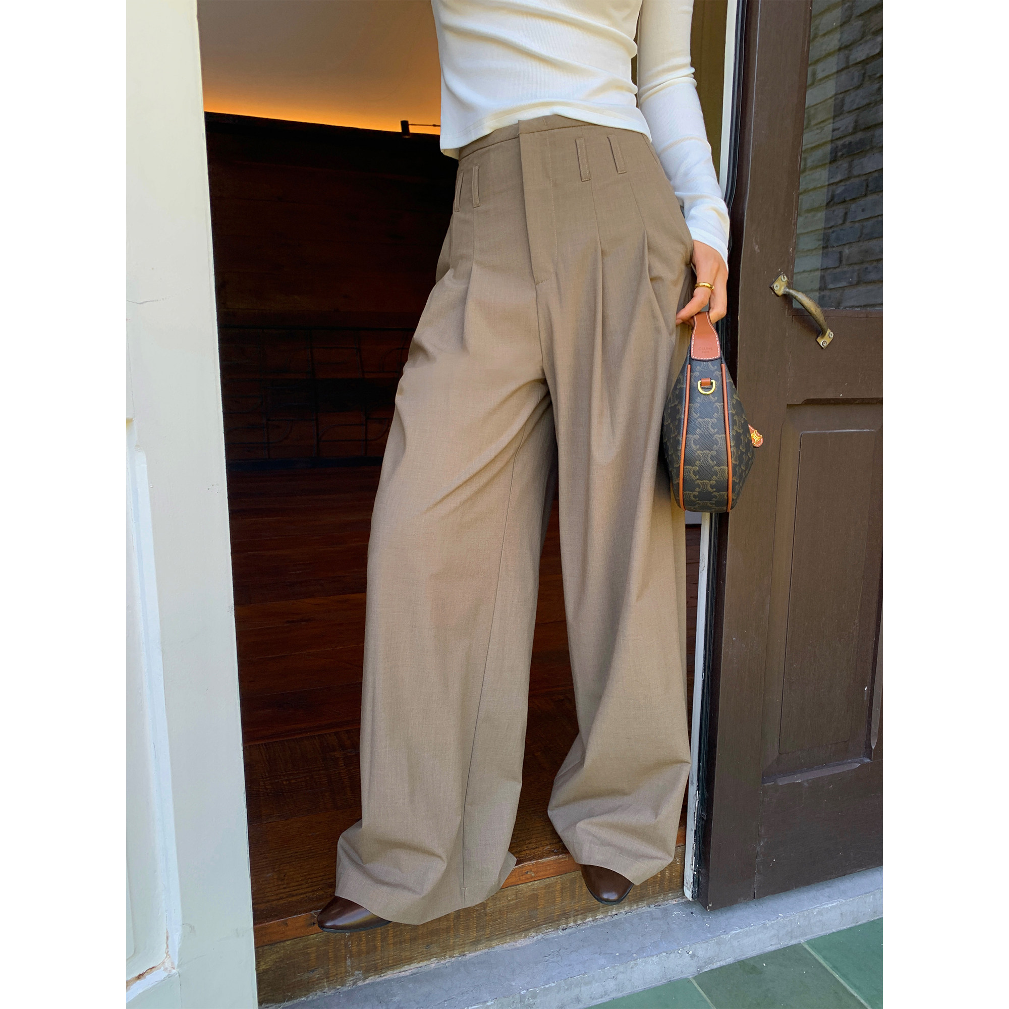 pusumede 律政佳人 职场姐感高腰休闲阔腿裤女直筒设计感西装长裤