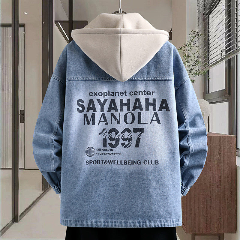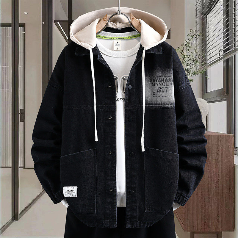 2026春季新款男生可脱卸帽牛仔夹克口袋贴标设计潮流港风百搭外套