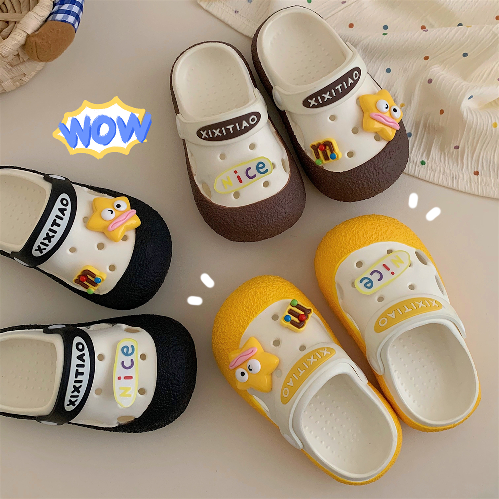 儿童户外穿包头凉拖鞋夏季防滑百搭趣味星星香肠嘴男童女童洞洞鞋