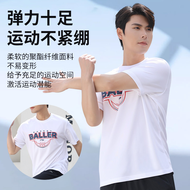 李宁t恤男款短袖速干衣篮球投篮服夏季冰丝宽松跑步健身运动半袖