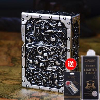 高档ZRRO佐罗重打盔甲煤油打O火机 富贵唐草皇室版贵族限量浮雕火