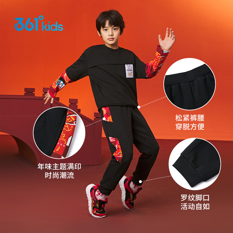 361童装男童加绒裤保暖长裤2026新款儿童梭织新年运动裤加厚裤子