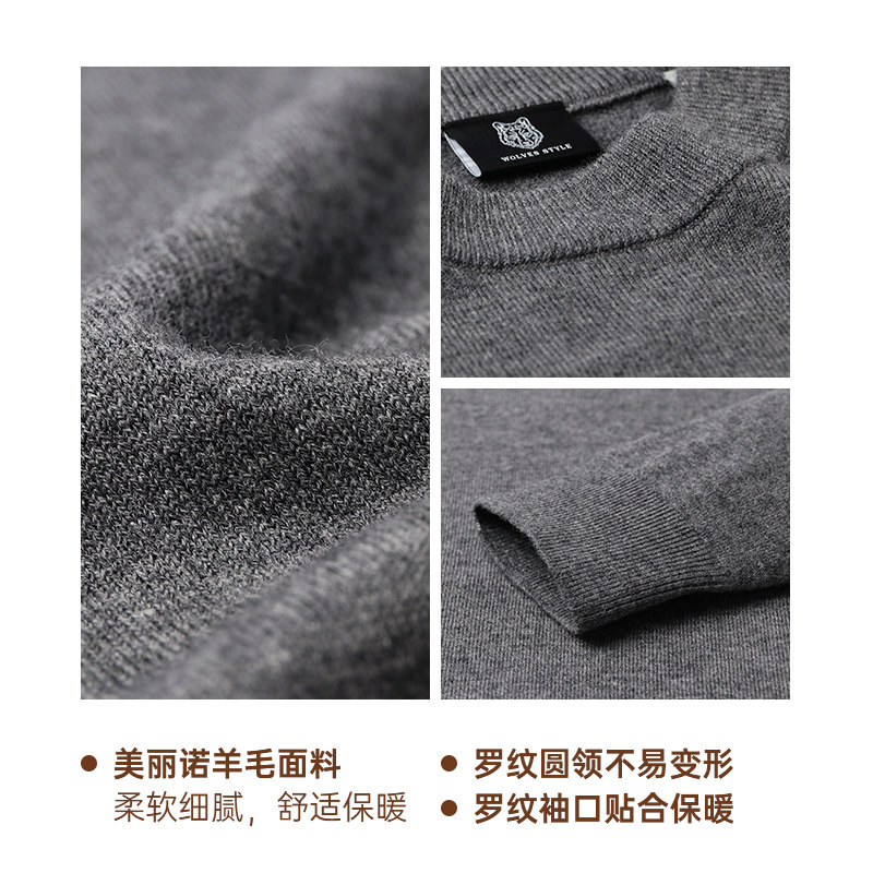 七匹狼毛衣男士2025新款秋冬季加厚黑色圆领打底针织羊毛衫男装潮