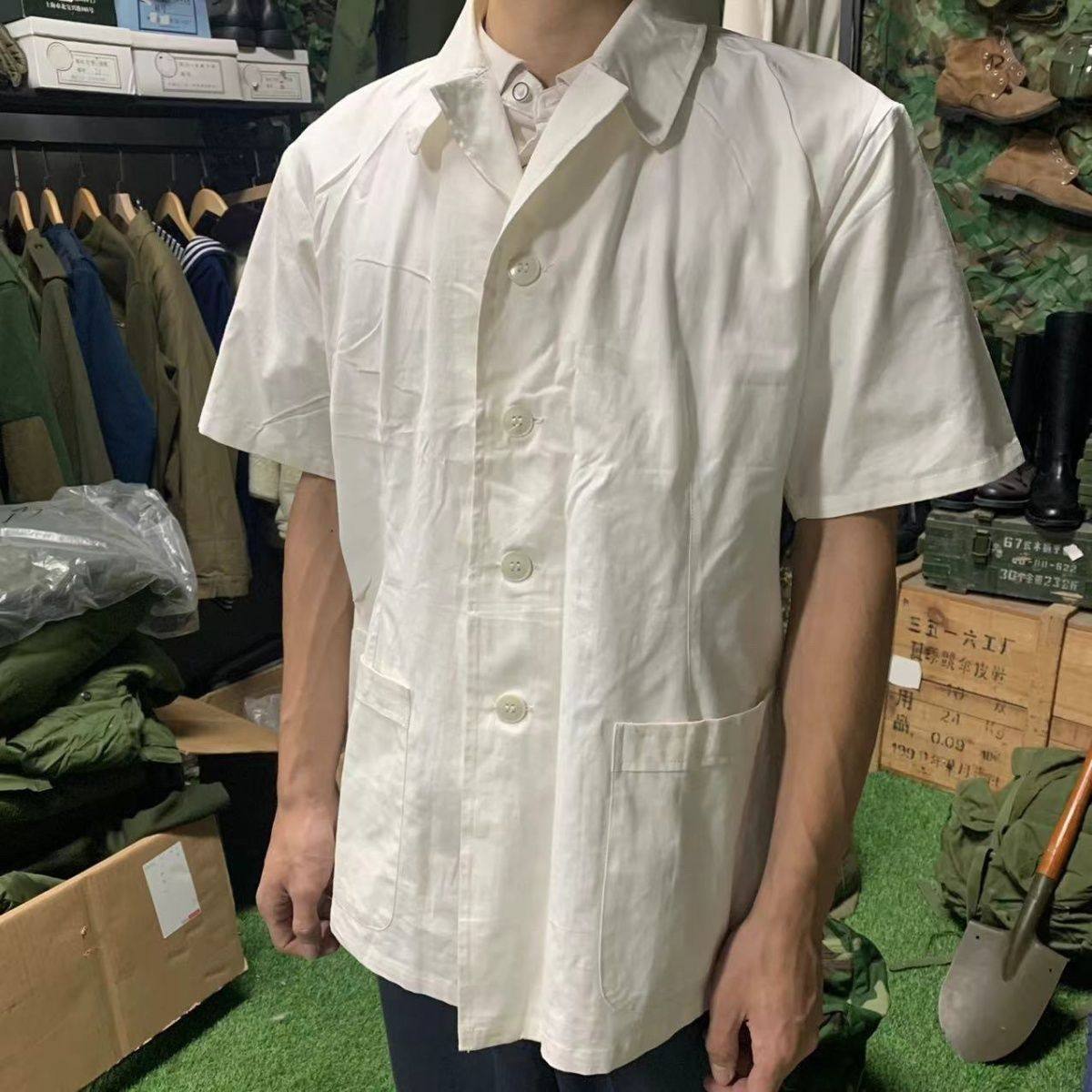 厨师夏季衬衫薄款女士短袖透气男女白色厨房食堂食品厂工作服衬衣