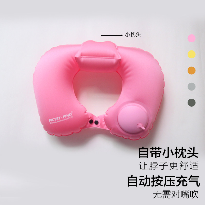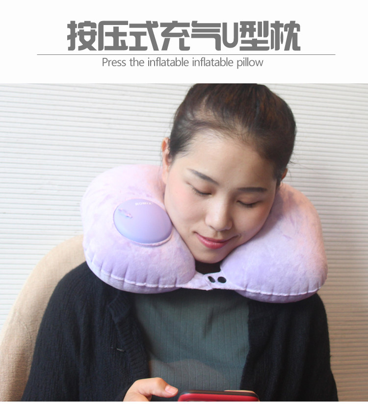 按压自动充气U型枕旅行飞机枕颈椎枕午休睡靠枕护颈护脖子U型枕头