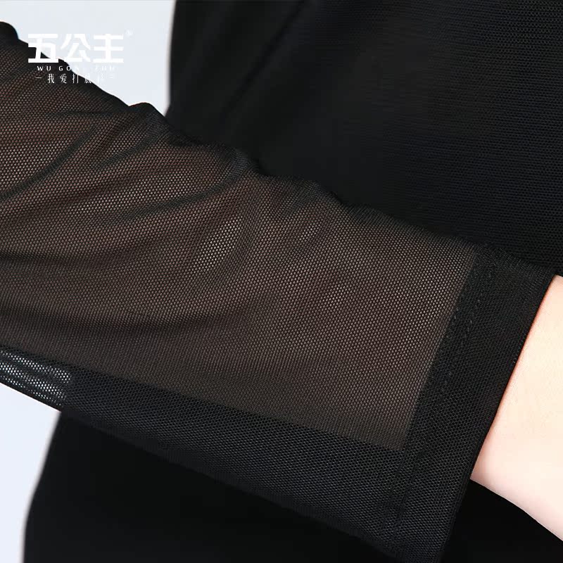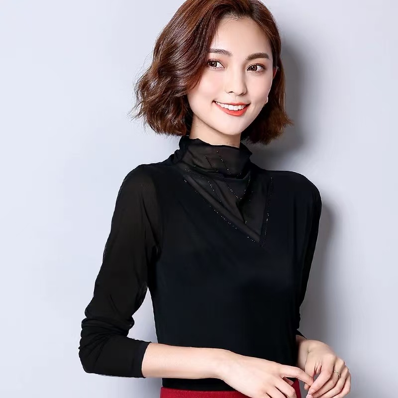 五公主高领网纱打底衫春秋新款镶钻纯色小衫长袖T恤纱衣加绒上衣
