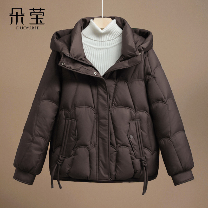 朵莹妈妈冬季羽绒服中年女洋气短款连帽外套中老年秋冬保暖棉衣服