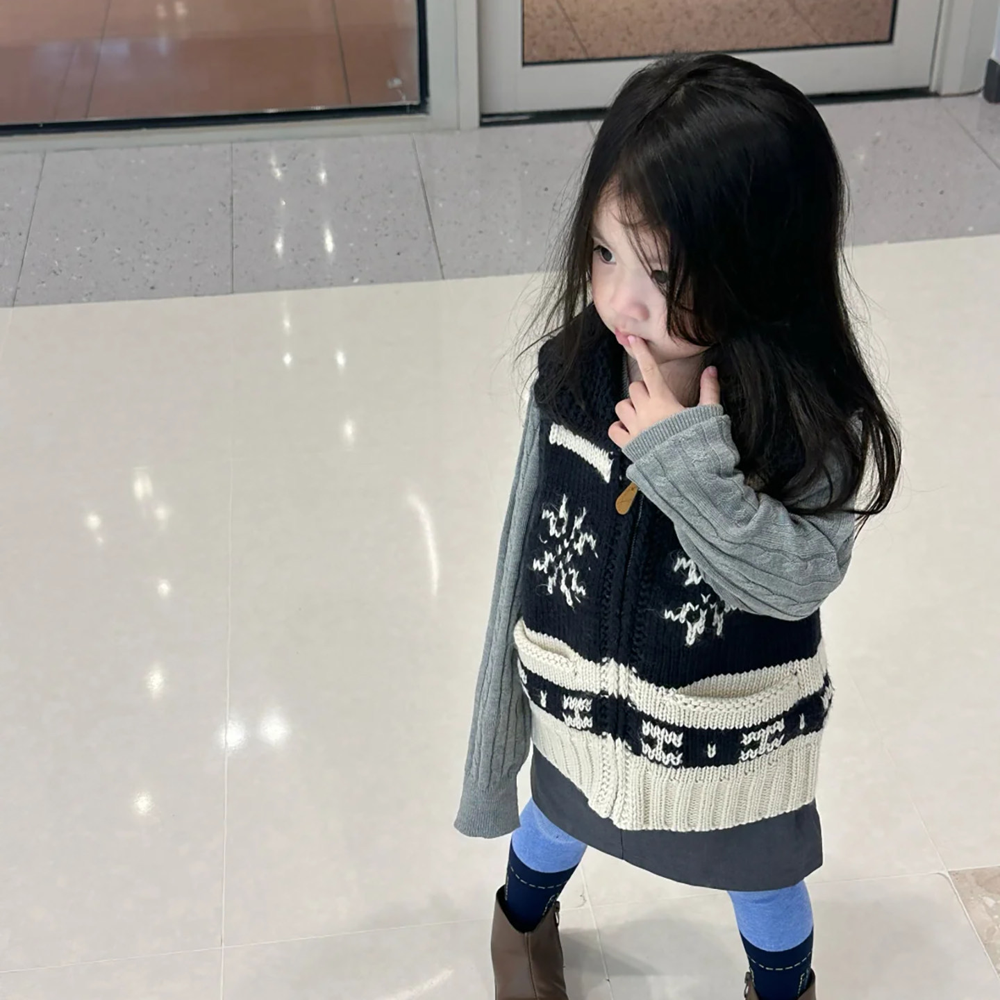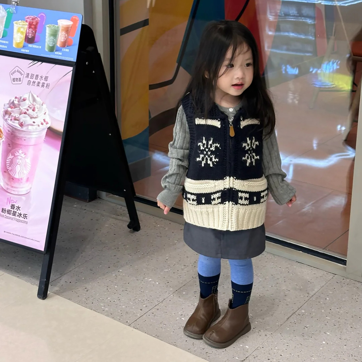 女童套装秋季ins风小女孩可爱百搭拼色针织马甲开衫半身裙春秋款