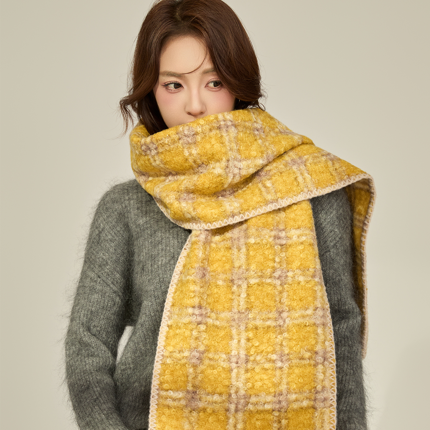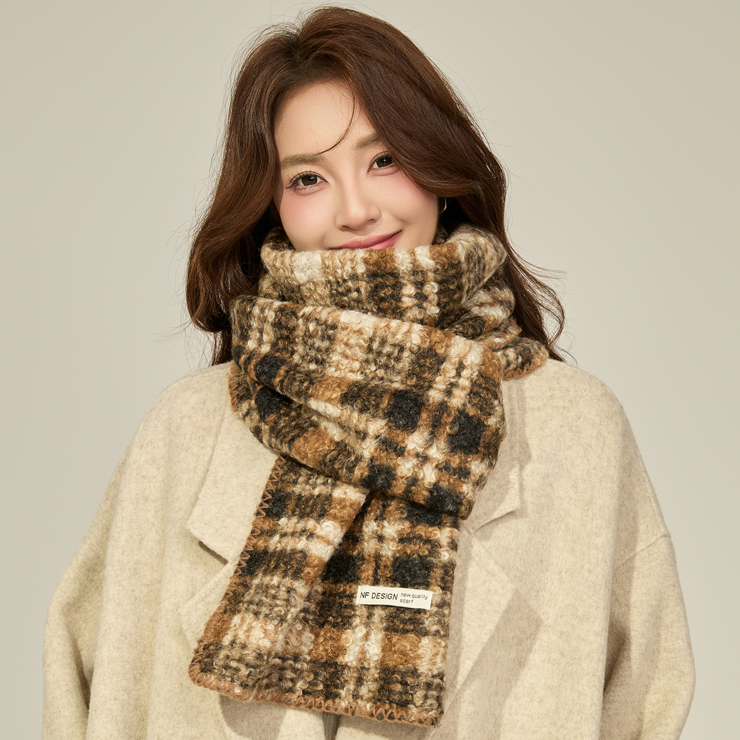 防羊羔绒拼色格子围巾女冬季2025新款韩版氛围感软糯保暖时尚围脖