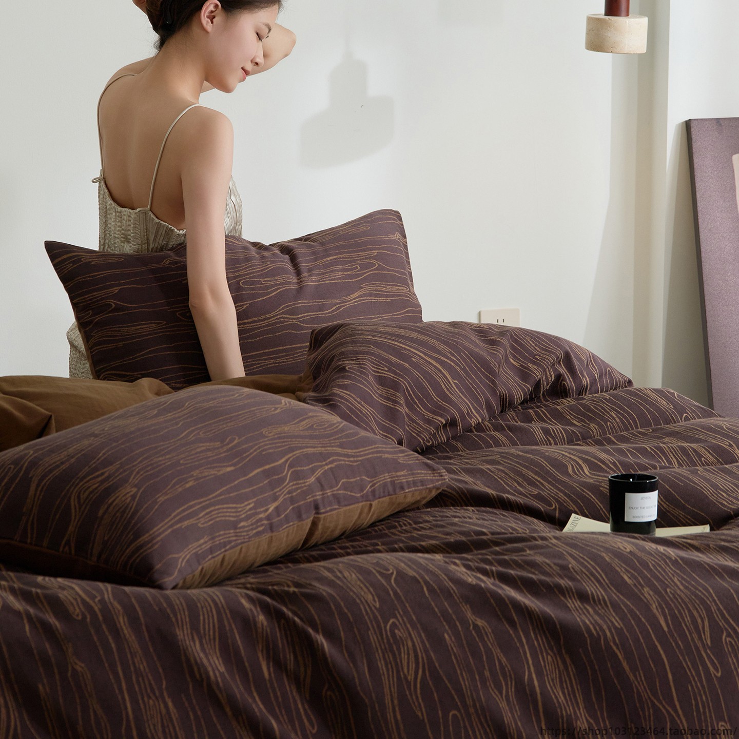 全棉四件套纯棉床单被套床笠款床上用品1.5m1.8m床单被套床品条纹