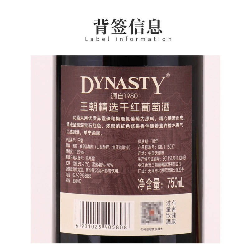 年货双支礼盒DYNASTY王朝官方旗舰店正品精选干红葡萄酒干白2瓶装