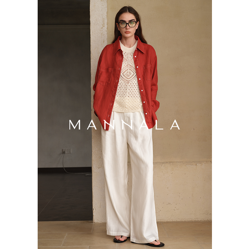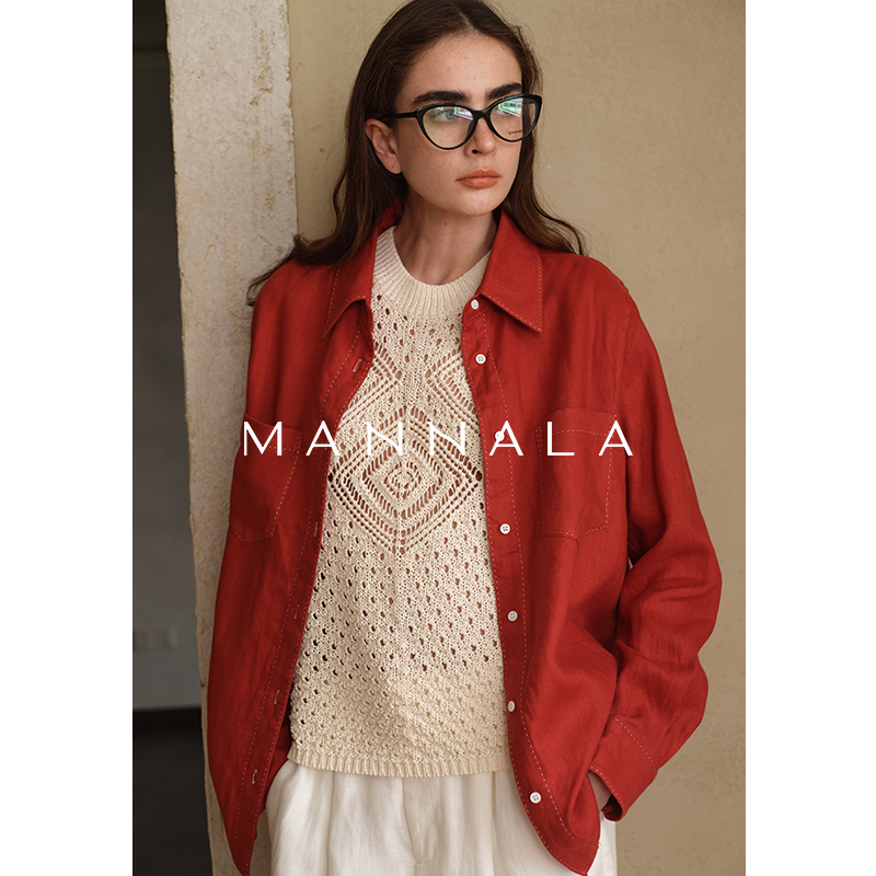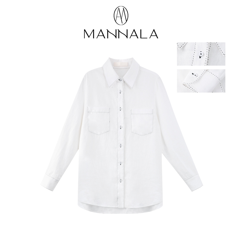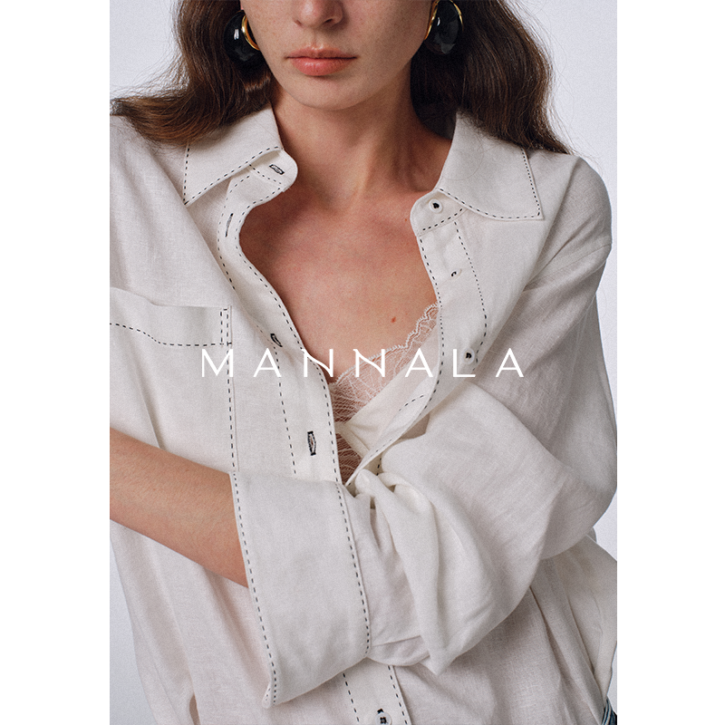 MANNALA丨“黑珠边”定制珠边撞色明线宽松自在纯亚麻衬衫 Q2471