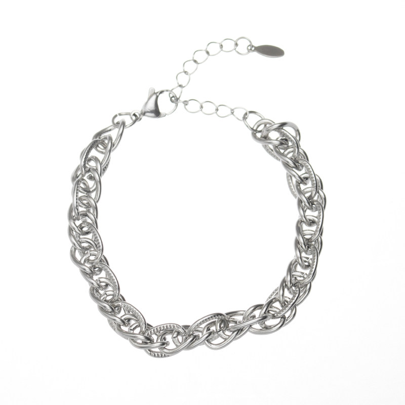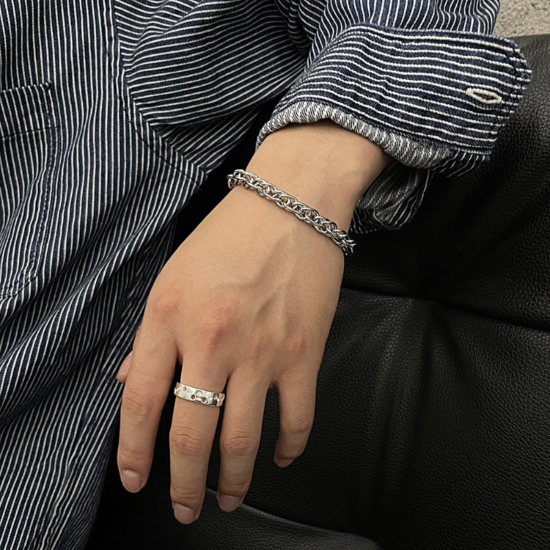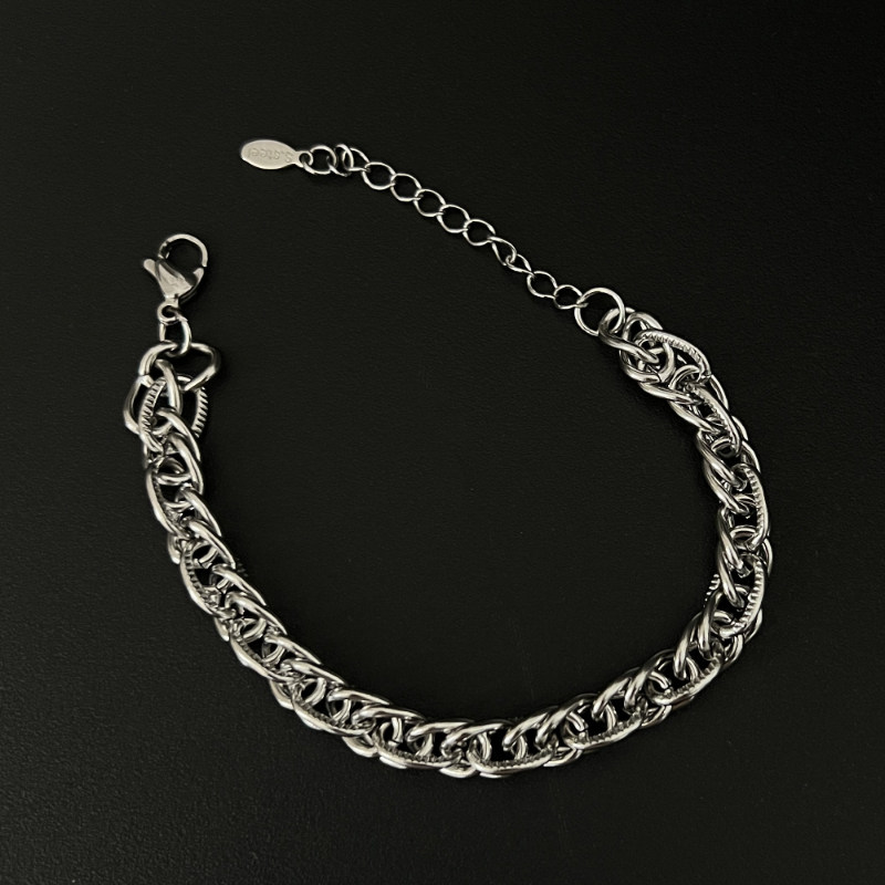 YiJian 潮男嘻哈hiphop粗款霸气手链美式钛钢不掉色银色手环轻奢