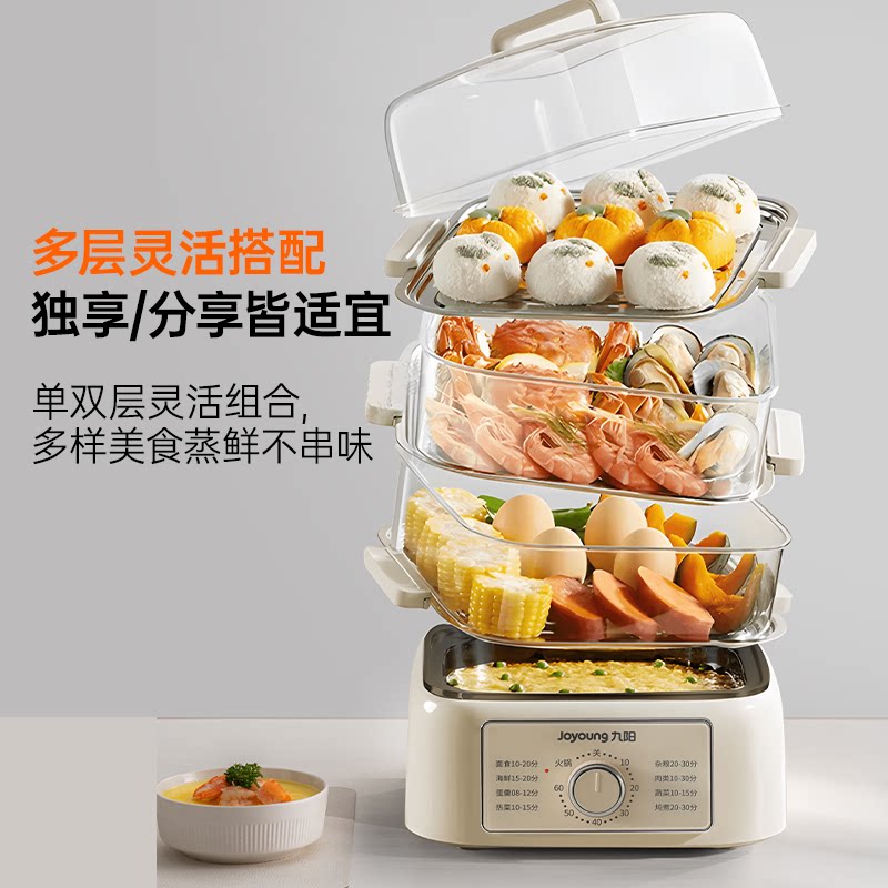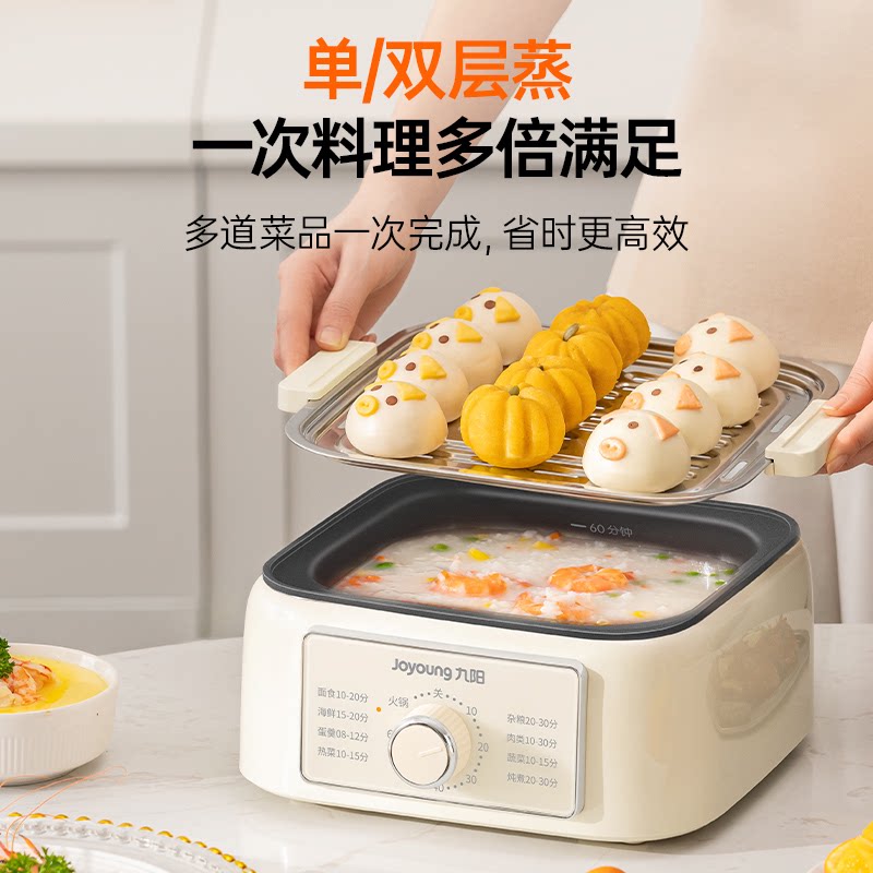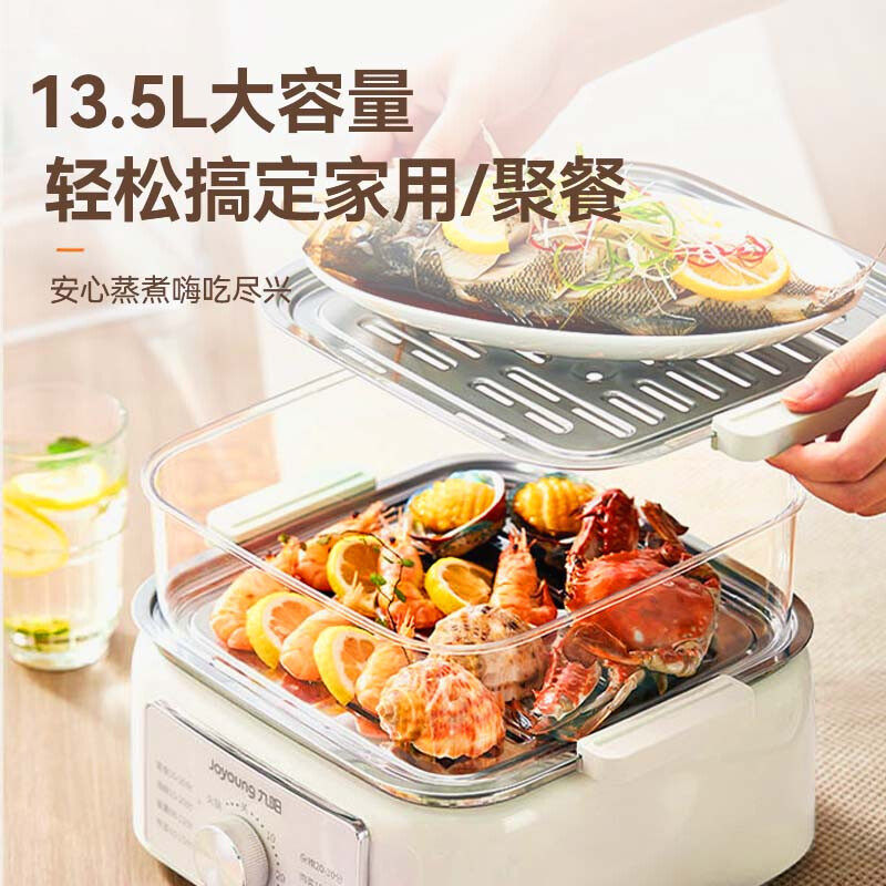 九阳电蒸锅13.5L电蒸箱家用四层蒸煮火锅多功能蒸汽锅蒸锅多用锅