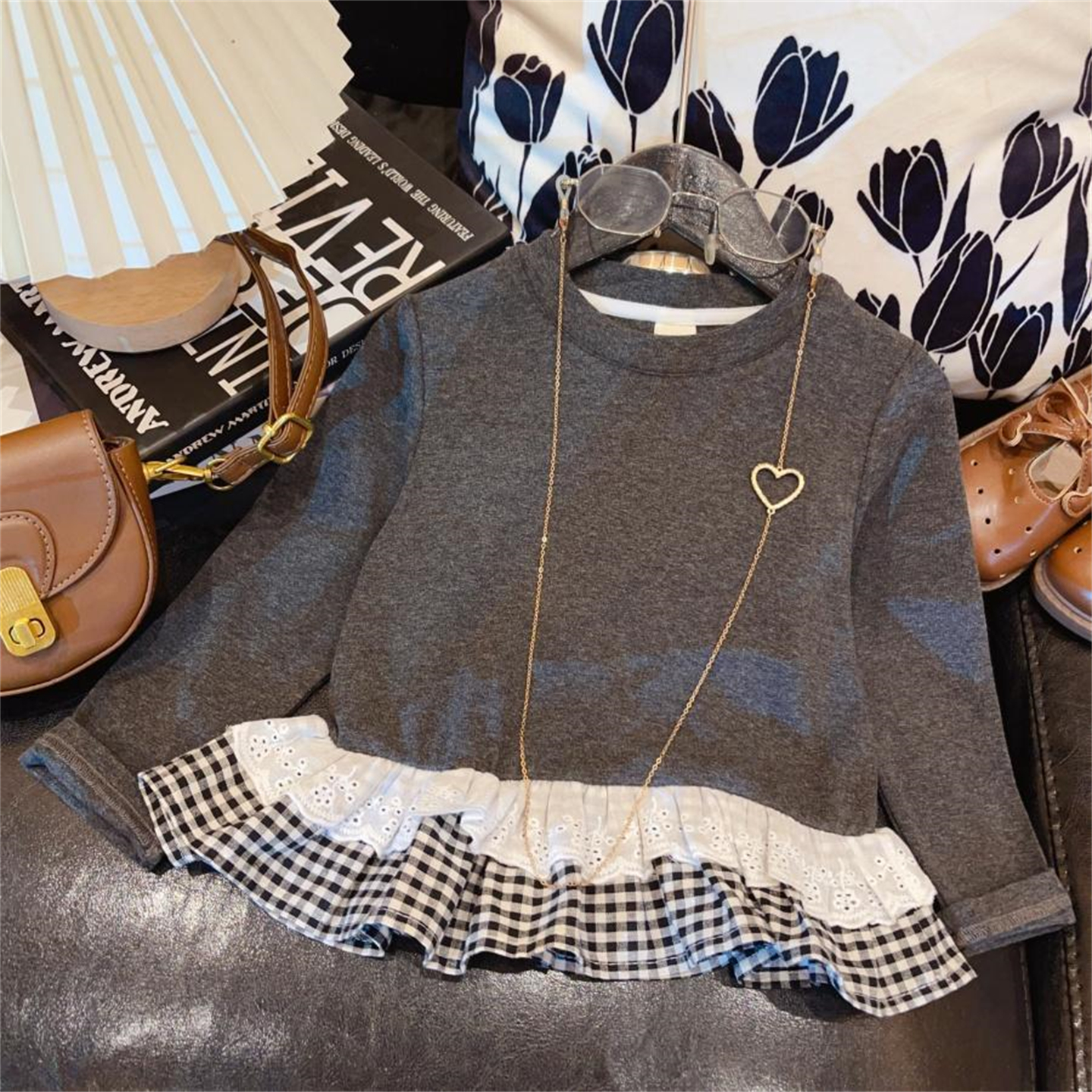 韩韩良品女童打底衫秋装2025新款洋气女宝宝蕾丝花边拼接长袖上衣