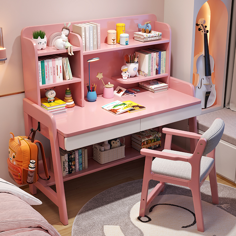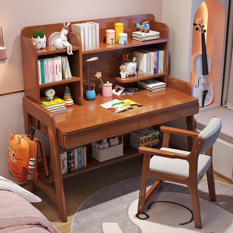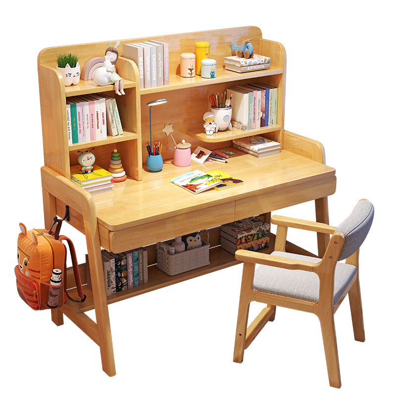 学习桌儿童家用书桌可升降实木书桌书架一体学生作业课桌椅套装