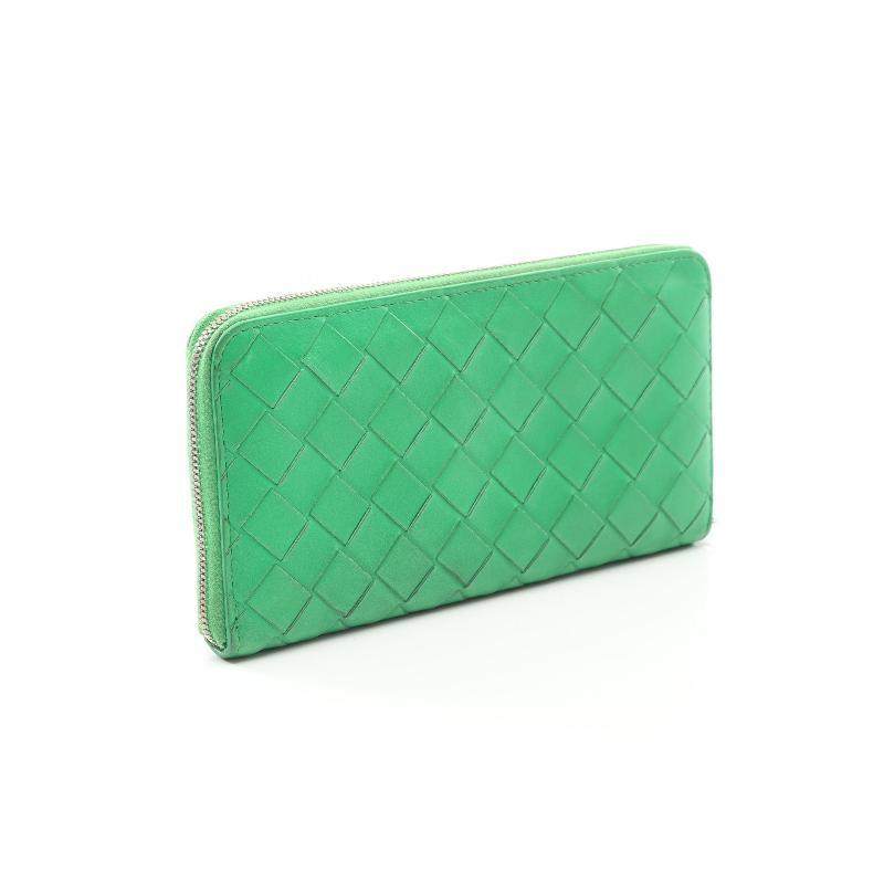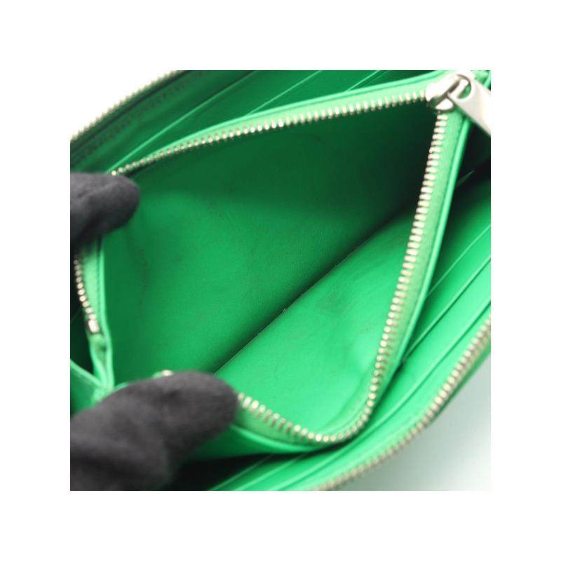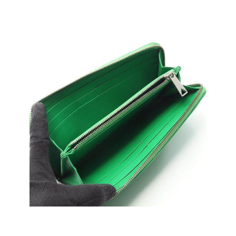 中古Bottega Veneta葆蝶家女B级9新round羊皮长钱包绿色