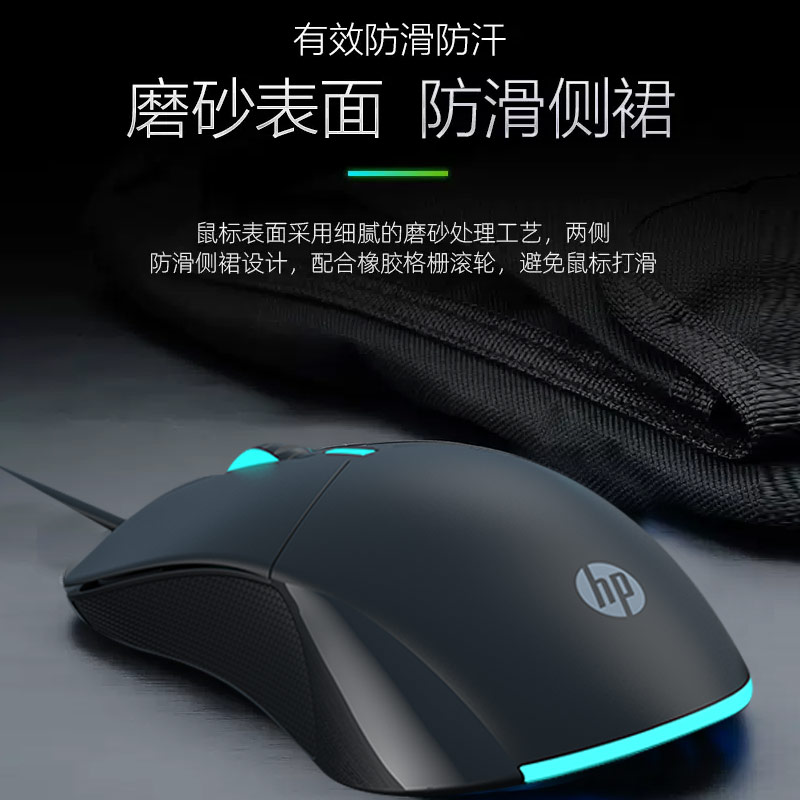 HP惠普鼠标有线静音办公游戏通用笔记本电脑台式磨砂手感usb