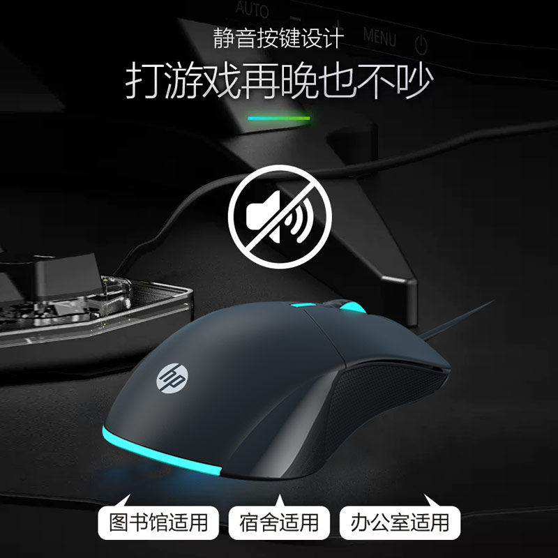 惠普有线鼠标静音USB人体工学