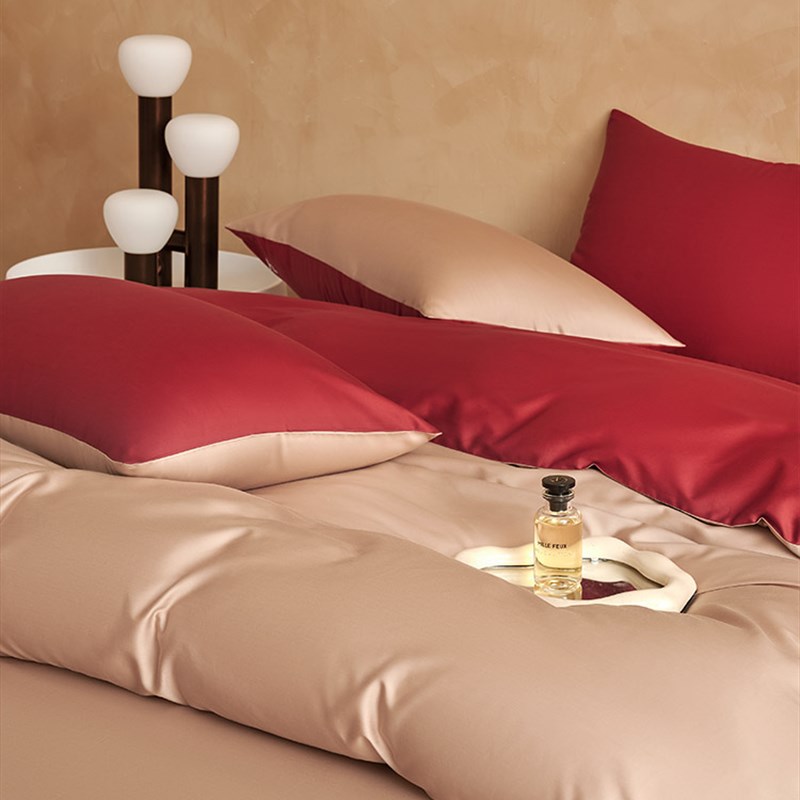 美式纯色60支长绒棉四件套简约刺绣全棉被套床单双人床上用品
