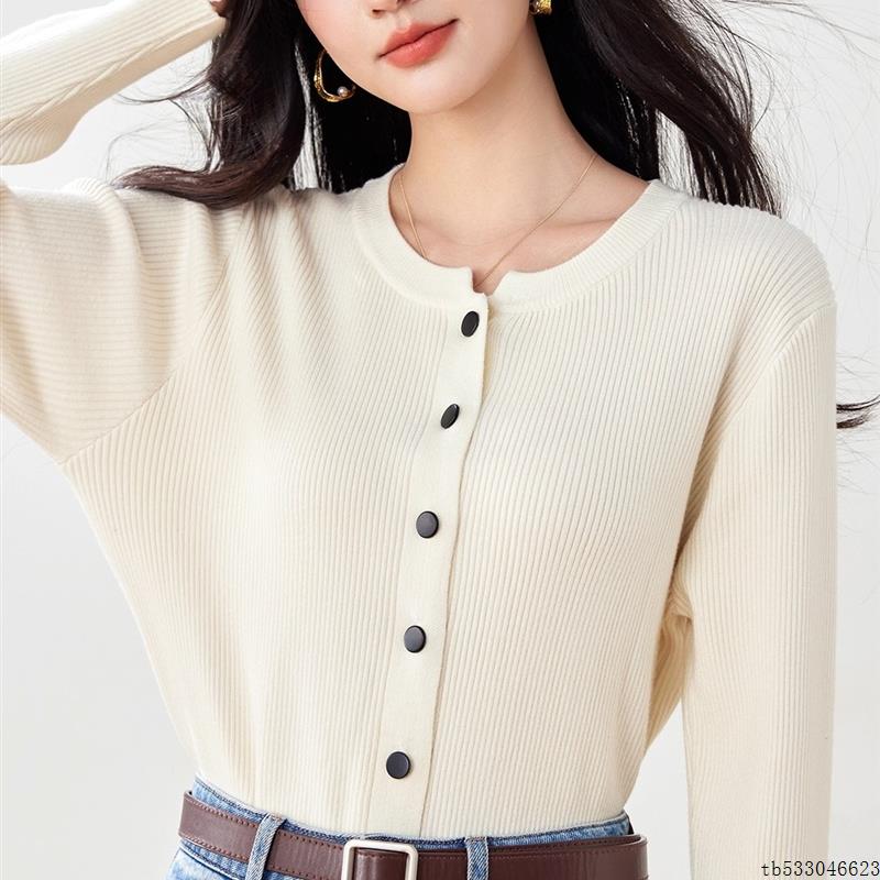 红色长袖针织开衫外套女2025春秋新款简约百搭薄毛衣外搭短款上衣