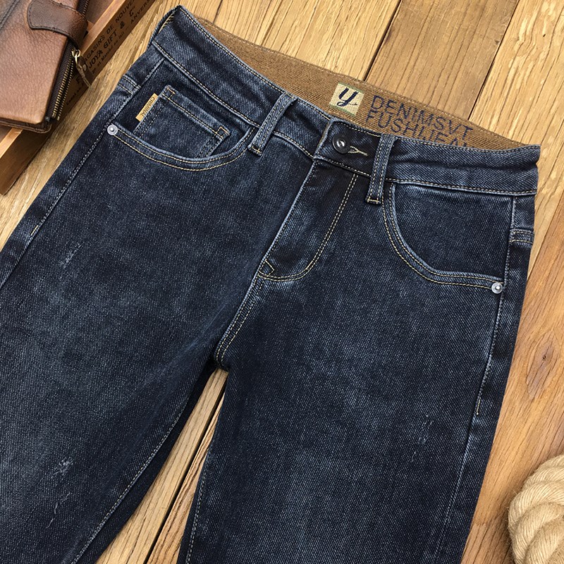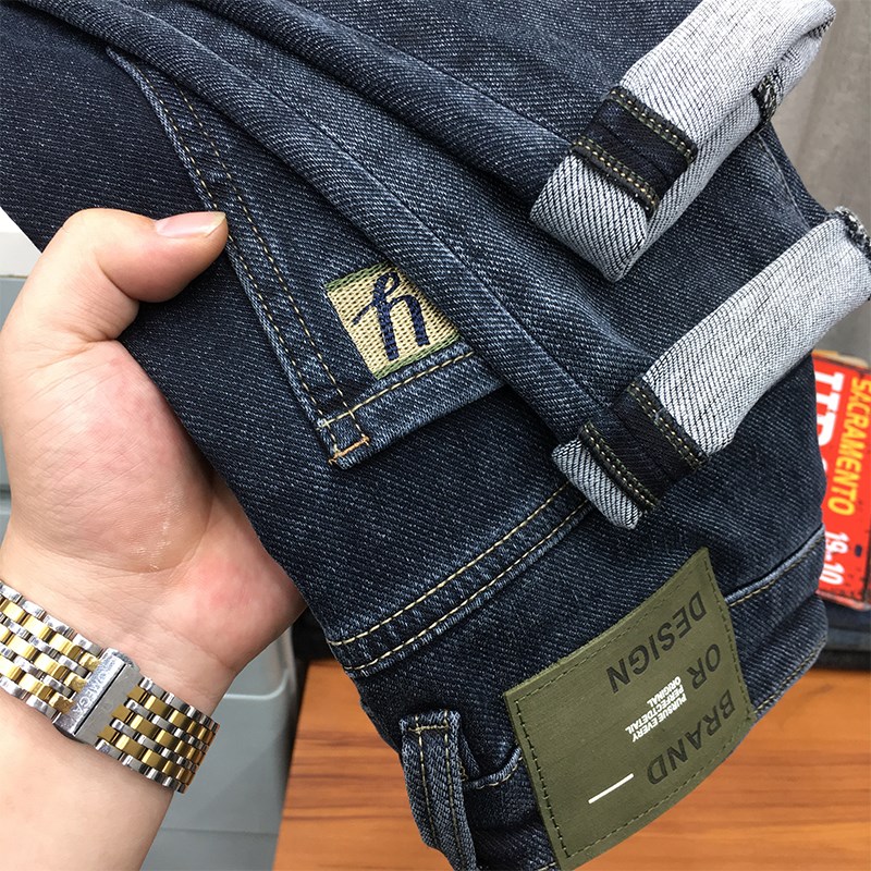 柔软印花牛仔裤男秋冬厚款 弹力潮流蓝灰色修身小脚长裤高端潮牌