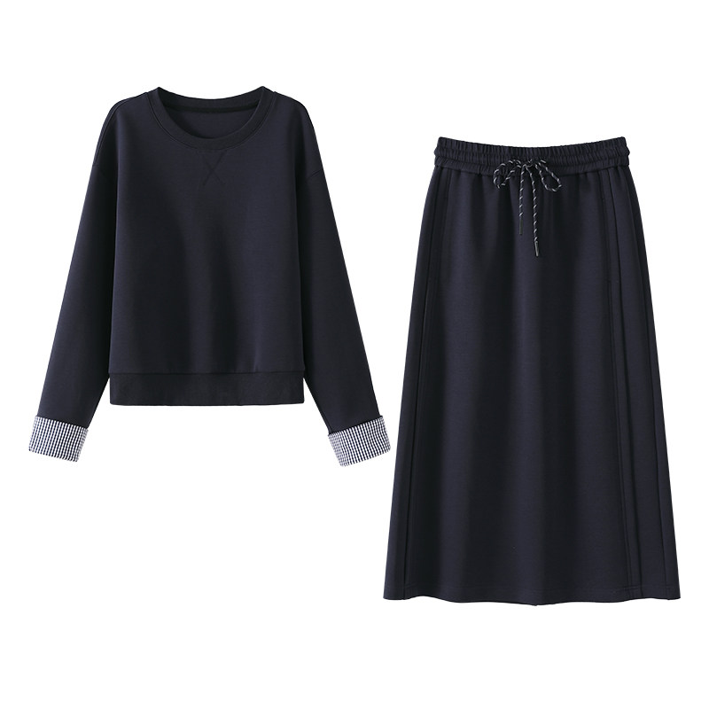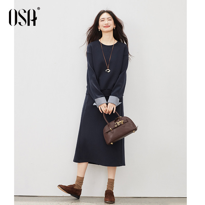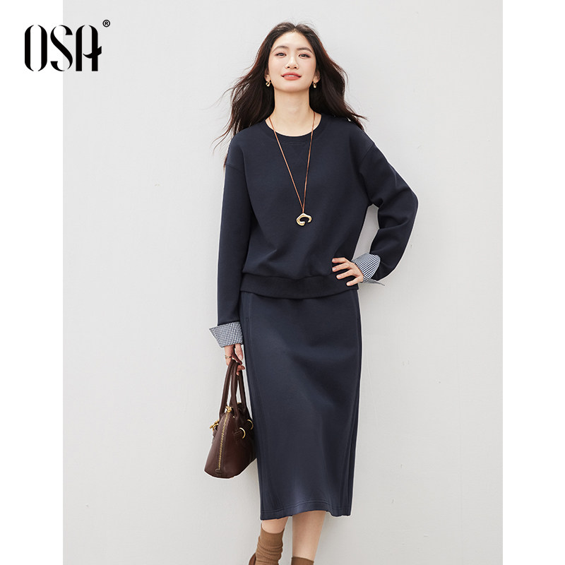 OSA欧莎条纹休闲套装女2025秋季新款松弛感卫衣半身裙通勤两件套