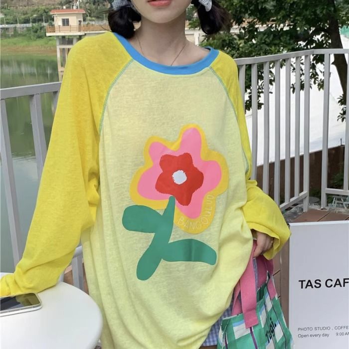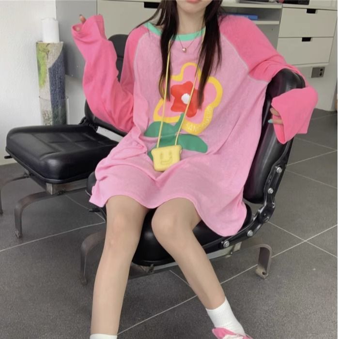 薄款撞色长袖防晒罩衫女夏季胖mm加肥超大码300斤宽松冰丝T恤上衣