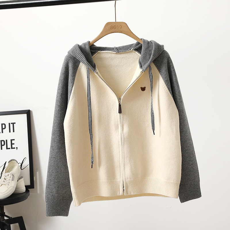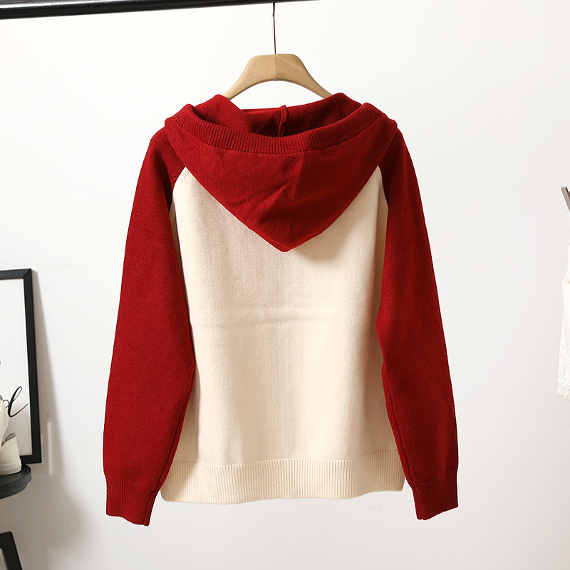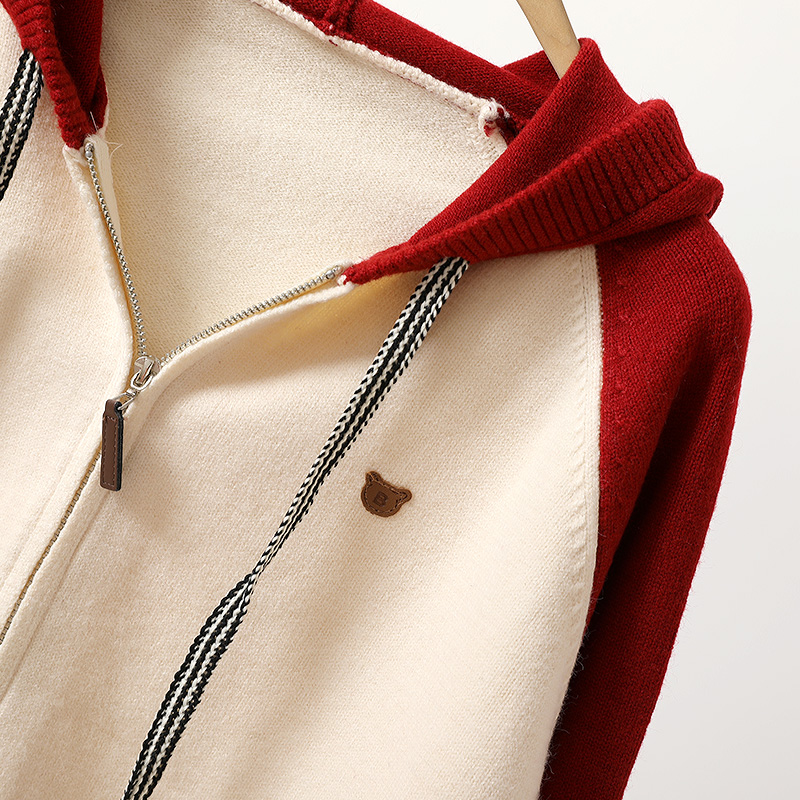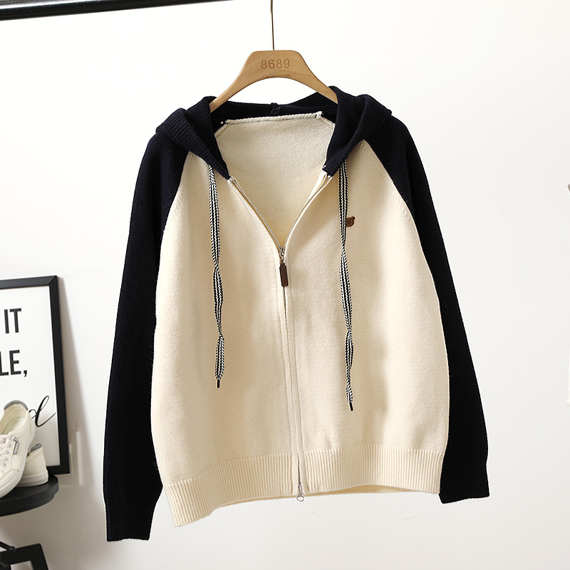秋季女款2025年新款春秋加厚复古撞色开衫毛衣女外套拉链连帽上衣