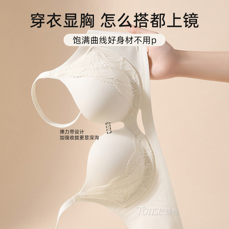无痕内衣女士小胸聚拢显大果冻条上托防下垂新款白色蕾丝文胸套装