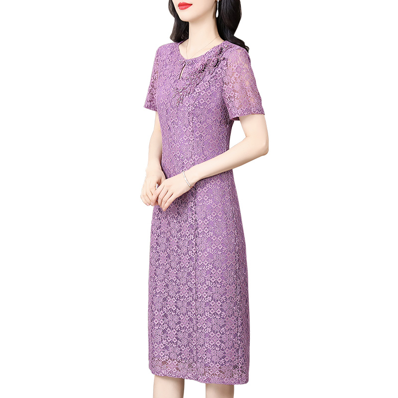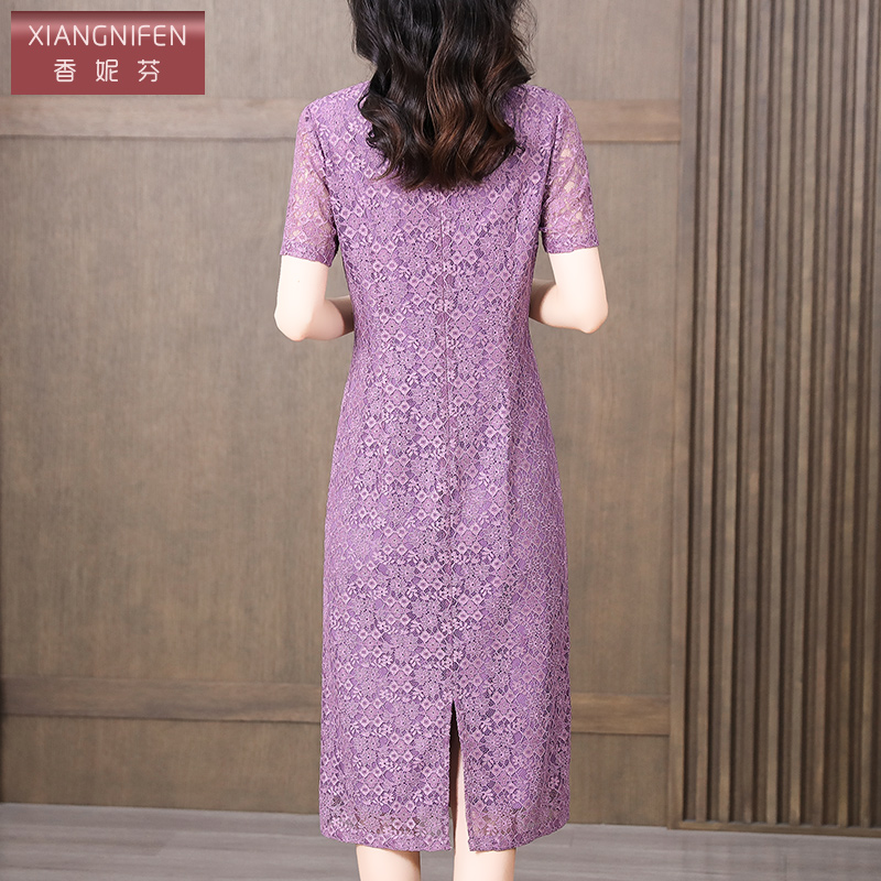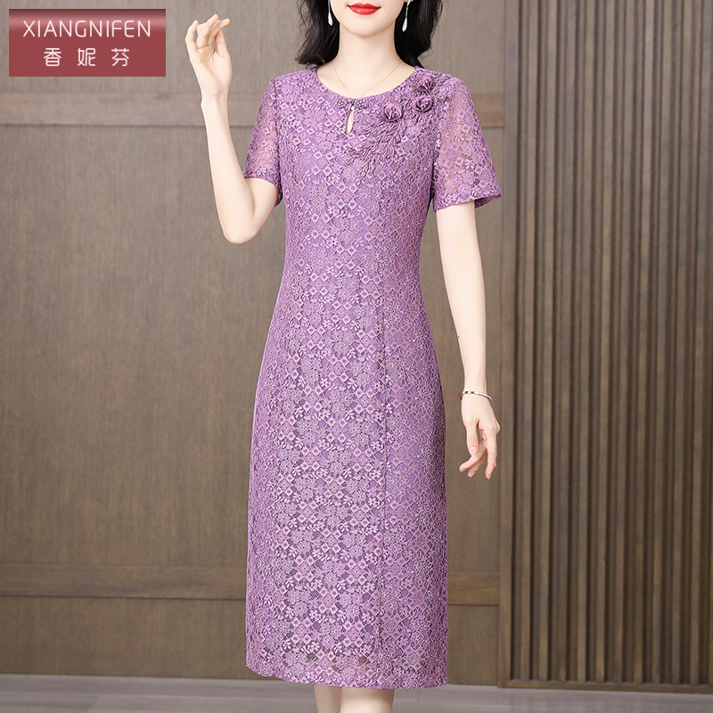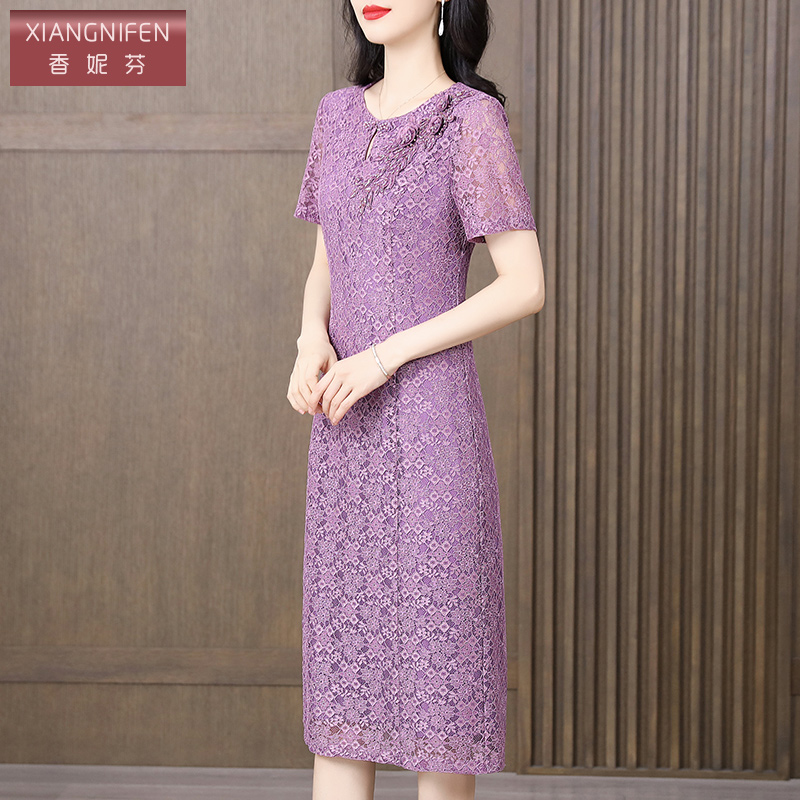 香妮芬重工镂空蕾丝高级感妈妈气质连衣裙女夏装2025新款端庄大气