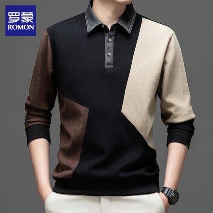罗蒙卫衣男士2025春秋季时尚潮流拼色上衣宽松休闲翻领长袖t恤男