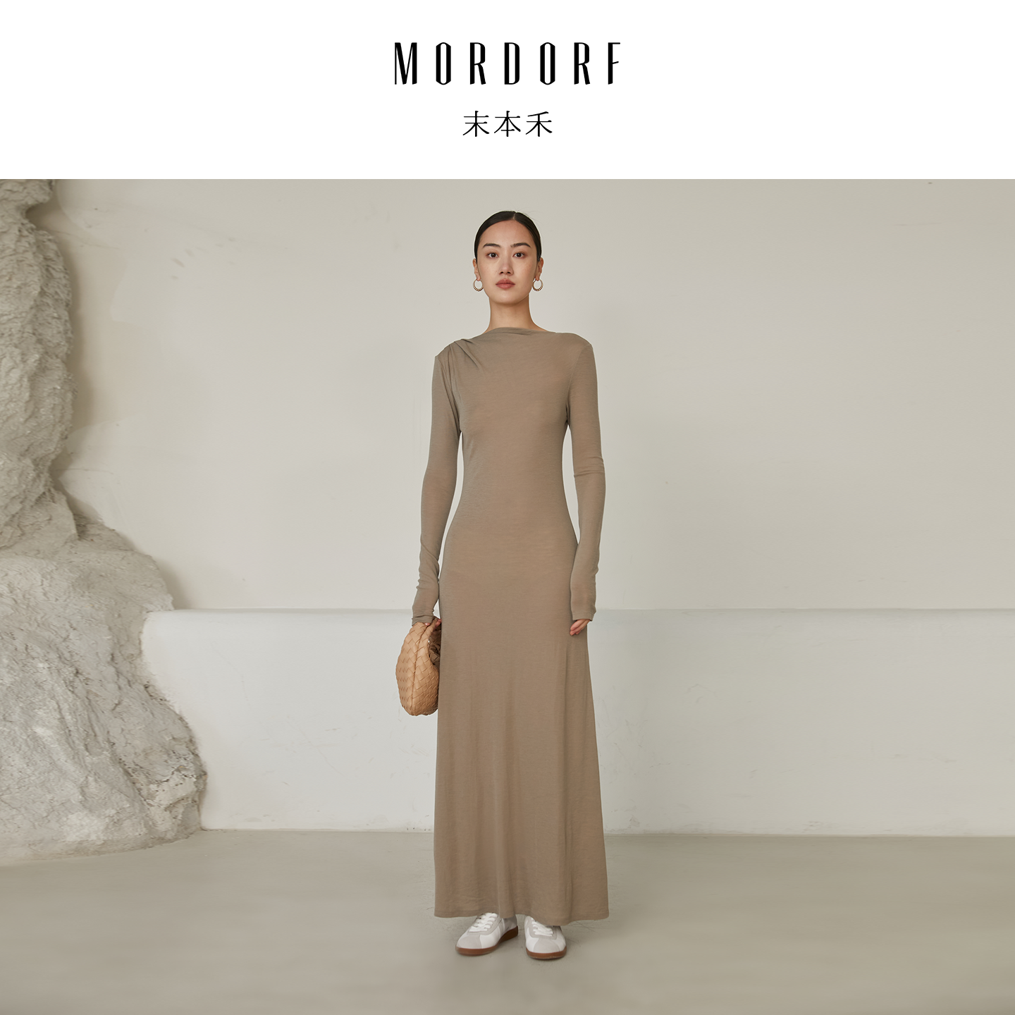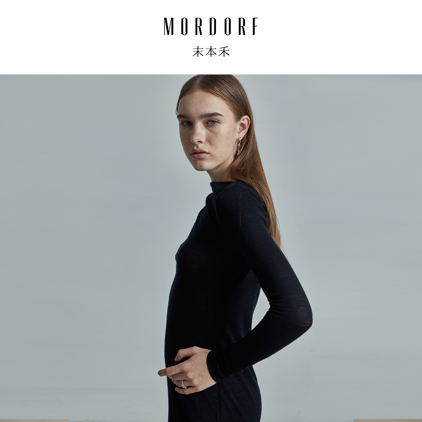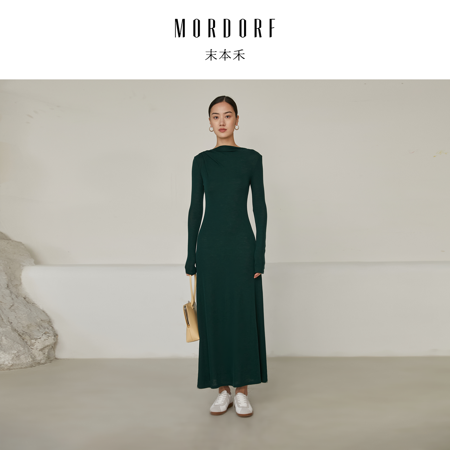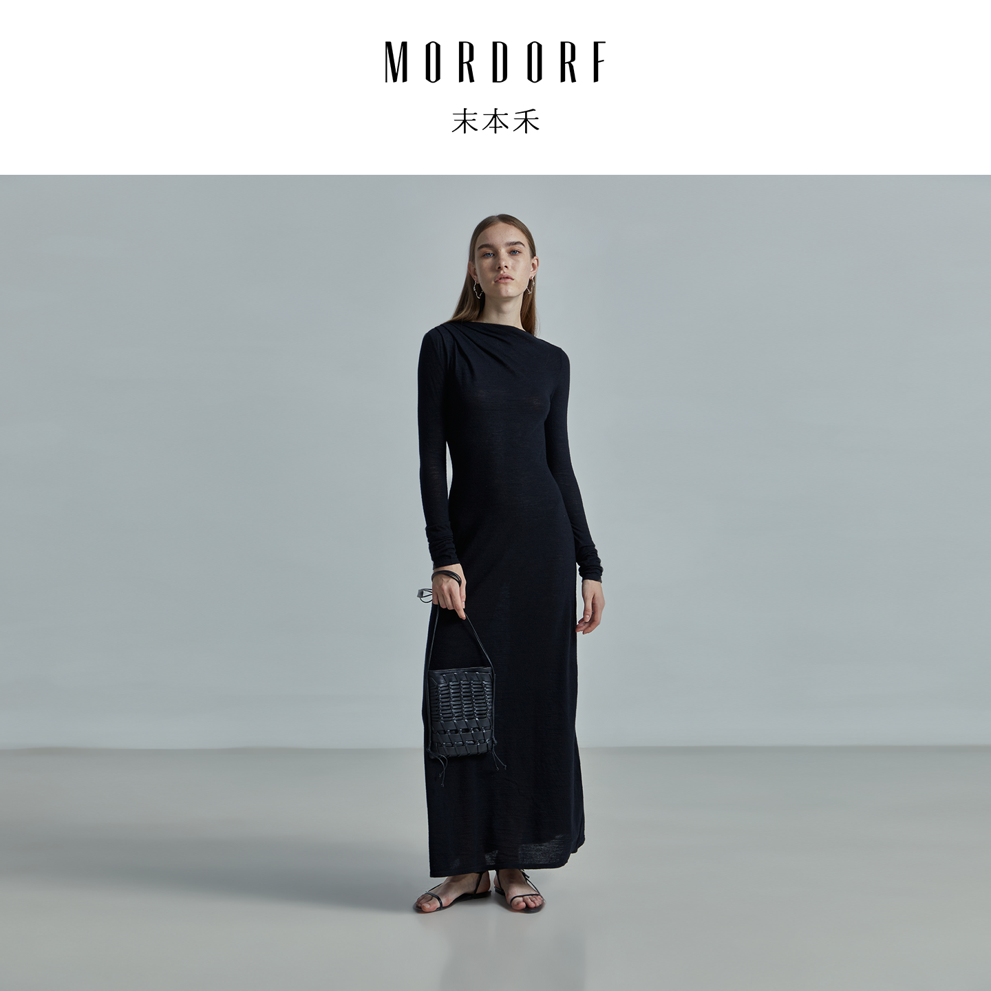MORDORF羊毛针织高雅连衣裙冬季修身收腰轻奢高级气质黑色长裙
