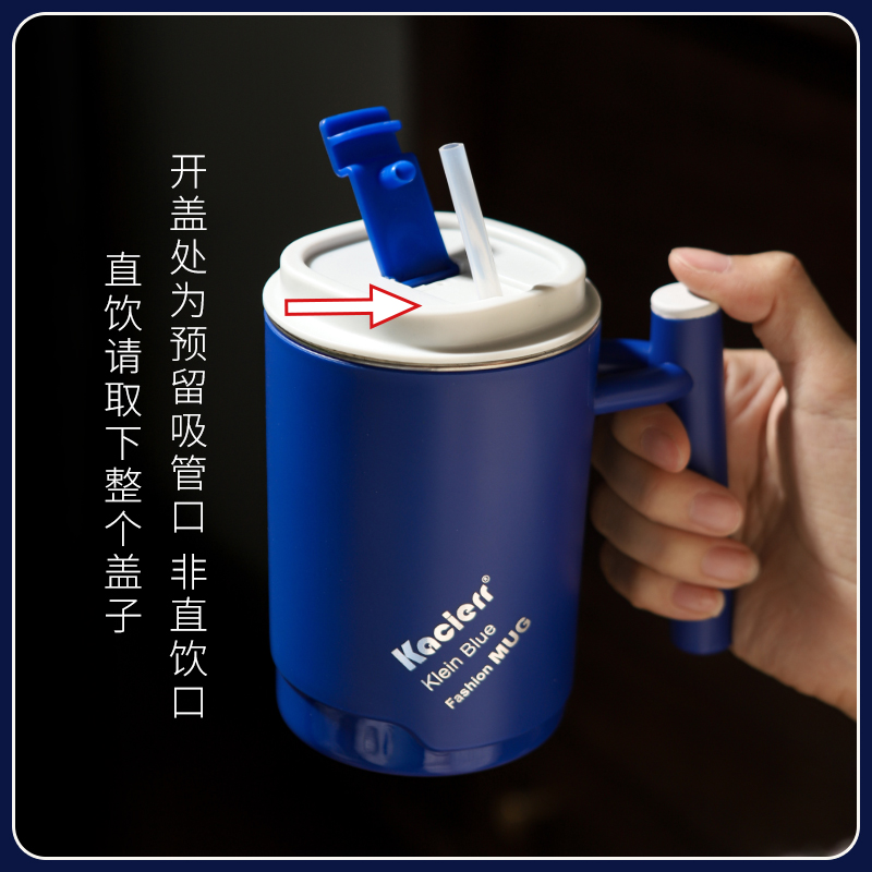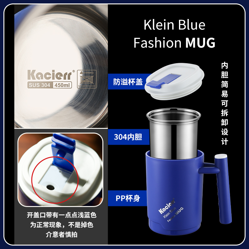 Kacierr克莱茵蓝马克杯双层防烫304内胆简易可拆水杯咖啡杯办公杯