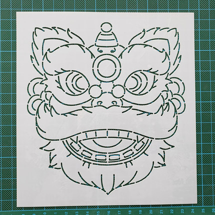 148 醒狮头国潮 刺绣刺子绣镂空画图模板diy描图工具模版绘图