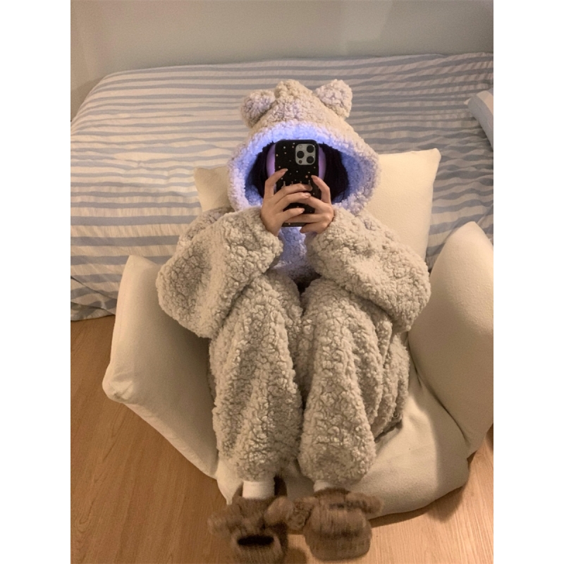 可爱软糯连帽珊瑚绒睡衣女款冬季