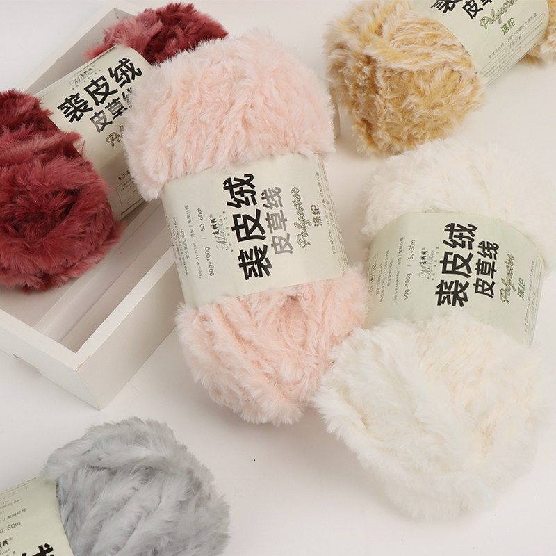 水貂绒皮草线裘皮绒毛线团珊瑚绒手工diy编织毛线仿懒兔毛织围巾