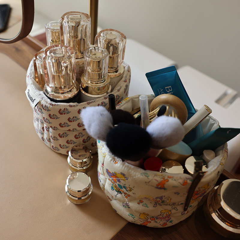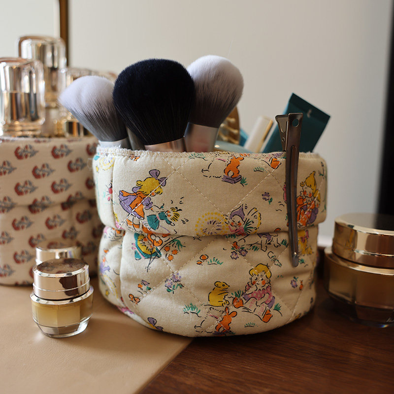 美摘化妆笔刷用具收纳筒桌面眉笔刷子碎花布艺女生宿舍文具收纳盒