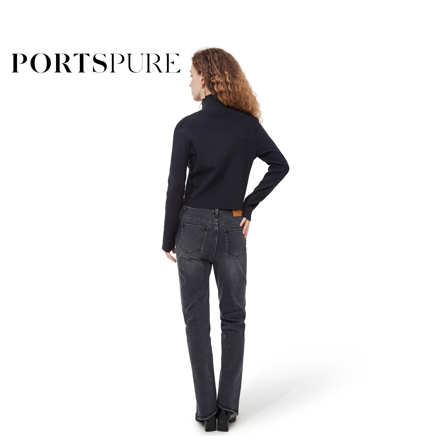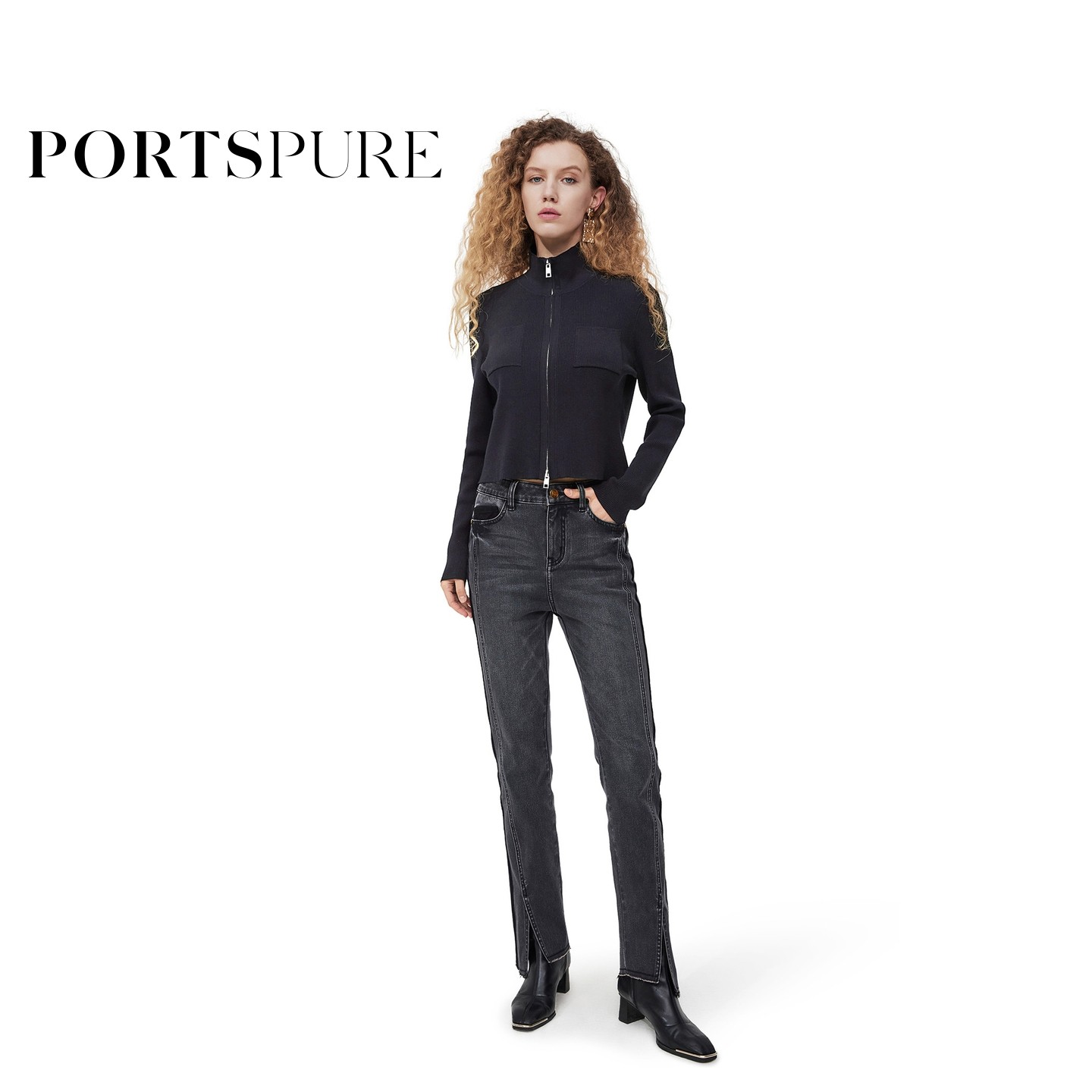 【博主同款】宝姿PORTSPURE女装秋冬酷飒简约干练半高领针织开衫